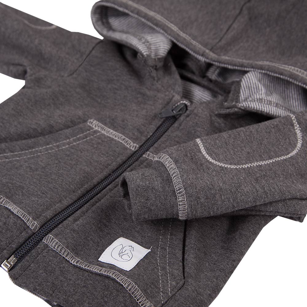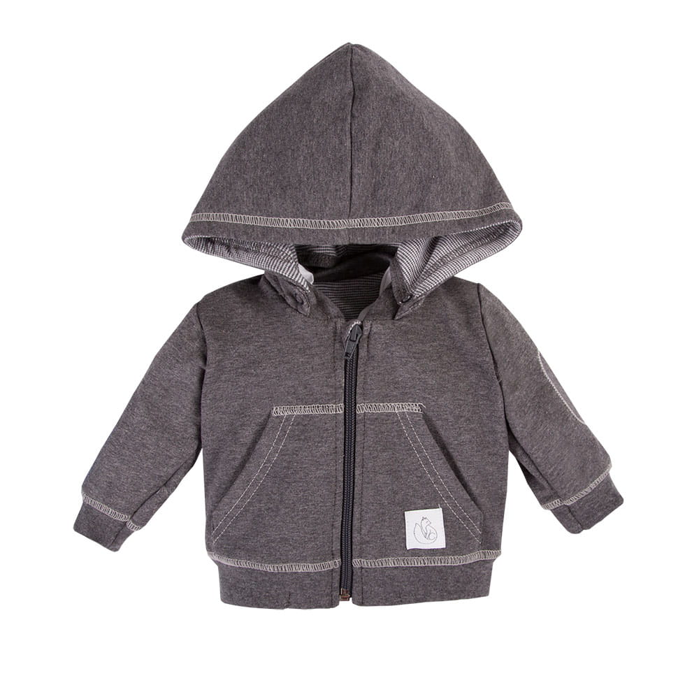 Grafitfarbene Kinder-Kapuzen-Sweatshirt mit Reißverschluss aus der Kollektion „Unique“, hergestellt aus weichem und angenehmem Sweatshirtstoff. Das Sweatshirt ist mit einem weichen Bündchen versehen. Das Sweatshirt wird mit einem Reißverschluss geschlossen. Es hat eine abnehmbare Kapuze. Als dekorative Elemente dienen eine Tasche und aufgenähte Aufnäher. Das Kinder-Sweatshirt eignet sich ideal für Spaziergänge und zum Spielen auf dem Spielplatz. Das einfarbige Sweatshirt passt perfekt zu bunten T-Shirts oder Bodys. Die Babykleidung von Eevi wird mit Sorgfalt hergestellt, um den Komfort und die Sicherheit der Haut Ihres Kindes zu gewährleisten. Warum vertrauen wir der Marke Eevi seit Jahren? Die Produkte werden mit Sorgfalt und unter Verwendung von Materialien höchster Qualität genäht. Bei der Herstellung von Babykleidung verwenden wir ausschließlich ökologische Farben, die für die Haut von Kindern und Babys unbedenklich sind. Die Stickereien in unseren Produkten sind von innen gesichert, damit sie die empfindliche Haut des Kindes nicht reizen. Alle Druckknöpfe und Verschlüsse, die wir in unseren Produkten verwenden, sind nickelfrei. Das von uns angebotene Sweatshirt für Kinder ist zertifiziert: „Sicher für Kinder” „Sicher für Babys” Material: 100 % hochwertige Baumwolle Alter des Kindes: von 6 Monaten bis 4 Jahren PRODUKT 100 % POLNISCH