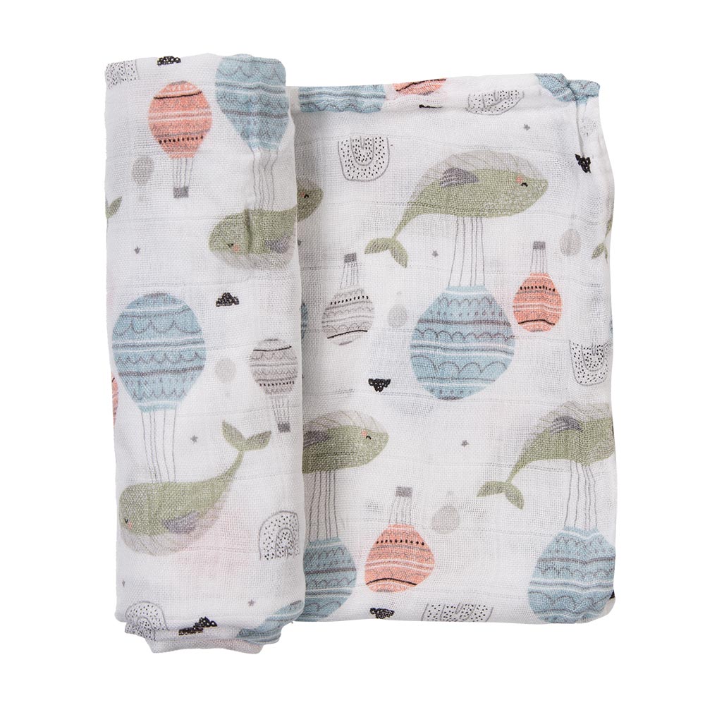 Weiße Bambus Babywindel mit Walen 60x60