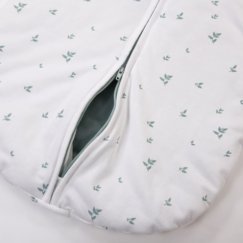 Weißer Baby-Schlafsack mit Blättermotiv