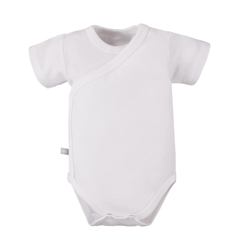 Weißer Wickelbody mit kurzen Ärmeln und Wickelausschnitt. Der Schnitt ermöglicht ein vollständiges Öffnen über die gesamte Länge, wodurch der Body funktional und bequem ist. Der Body ist mit einem weichen Saum versehen. Babybodys eignen sich ideal für die ersten Lebensmonate des Kindes und gehören zu den von Müttern am häufigsten gewählten Artikeln. Alter des Kindes: 0 bis 6 Monate Kollektion: WHITE Material: 95 % hochwertige Baumwolle, 5 % Elasthan Struktur/Materialart: Strickware Pflegehinweise: Maschinenwäsche bei 40 °C, nicht im Wäschetrockner trocknen Muster: Farbe – weiß Ärmel: Kurzer Ärmel Verschluss: Wickelverschluss Verarbeitung: Weiche Paspel Herkunft: 100 % polnisches Produkt Zertifikate: „Sicher für Kinder”, „Sicher für Babys” Die Babykleidung von Eevi wird mit Sorgfalt für den Komfort und die Sicherheit der Haut Ihres Kindes hergestellt. Warum vertrauen wir der Marke Eevi seit Jahren so sehr? Die Produkte werden mit Präzision und unter Verwendung von Materialien höchster Qualität genäht. Bei der Herstellung von Babykleidung verwenden wir ausschließlich ökologische Farben, die für die Haut von Kindern und Babys unbedenklich sind. Die Stickereien in unseren Produkten sind von innen gesichert, damit sie die empfindliche Haut des Kindes nicht reizen. Alle Druckknöpfe und Verschlüsse, die wir in unseren Produkten verwenden, sind nickelfrei.