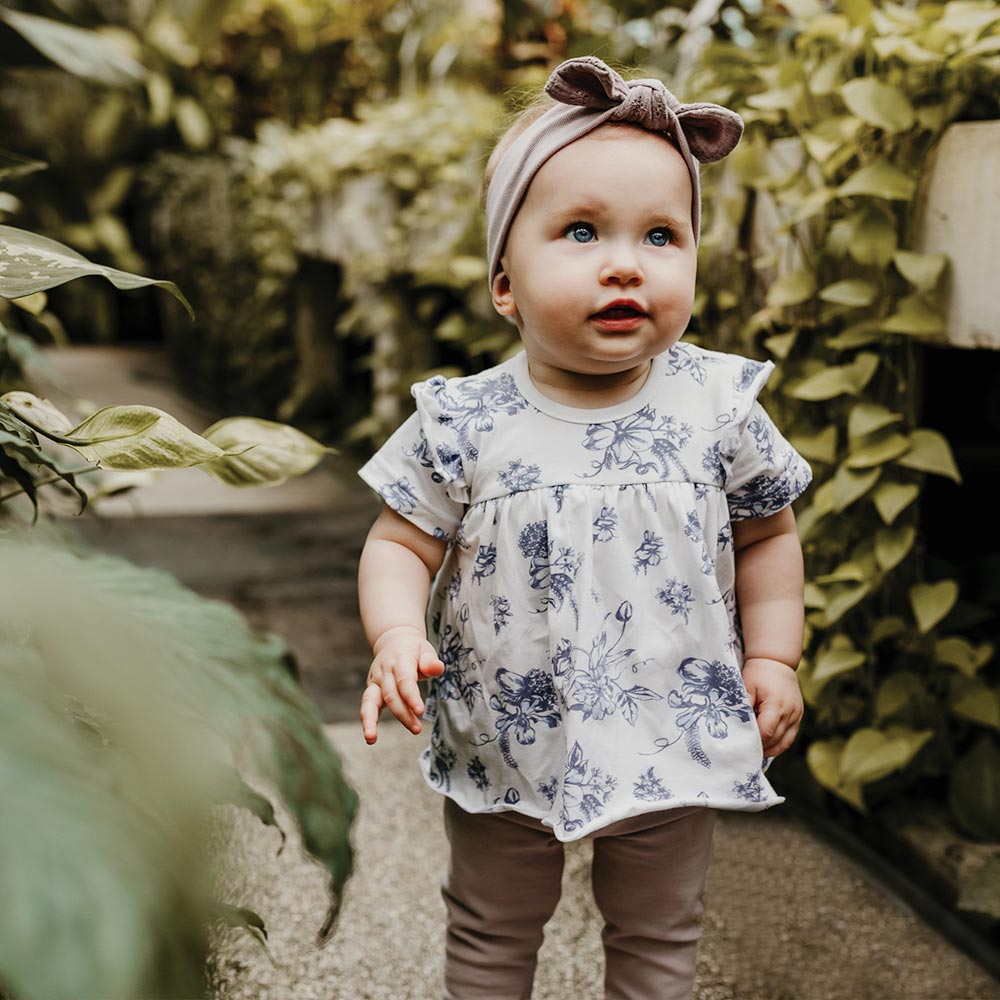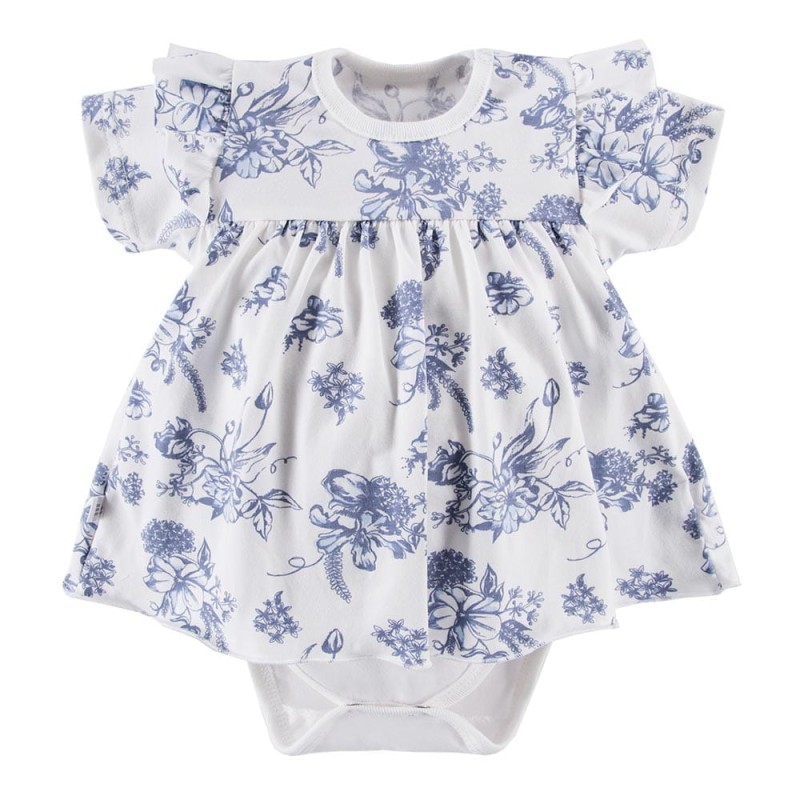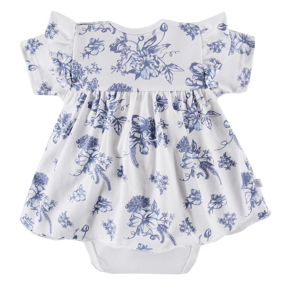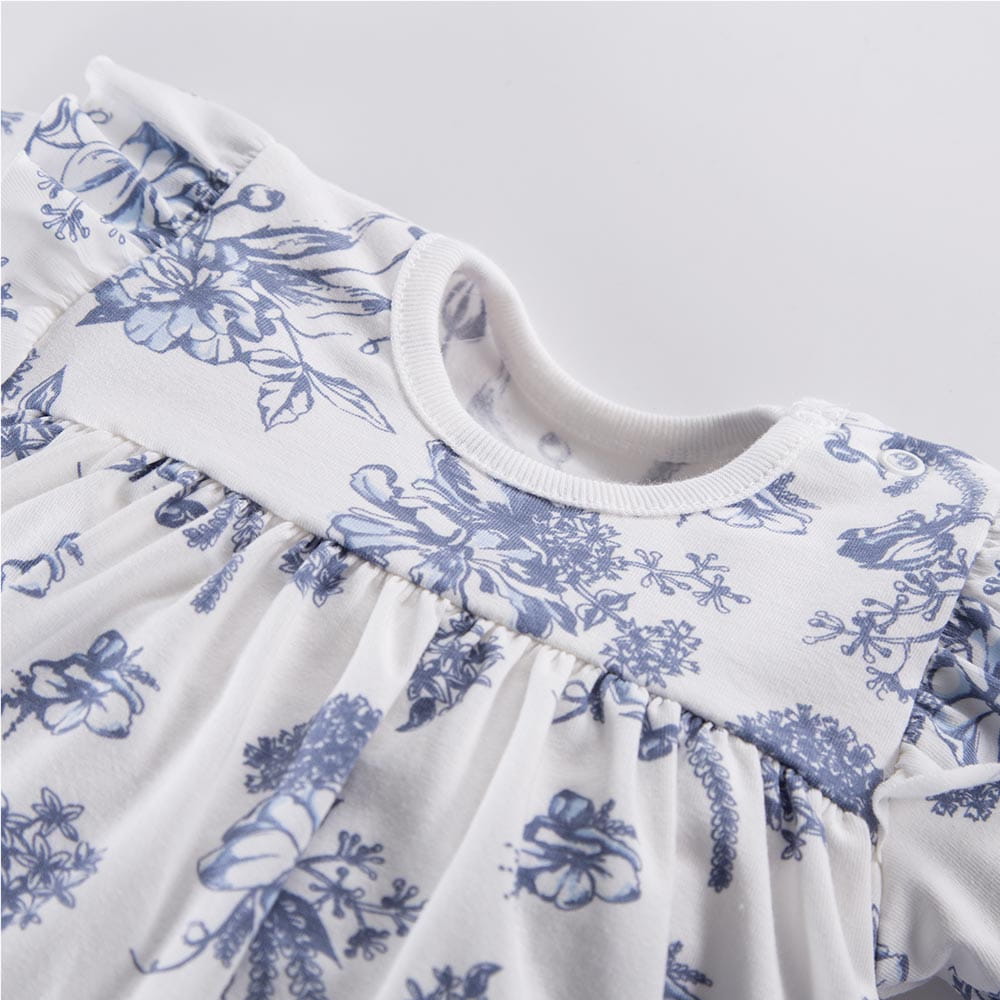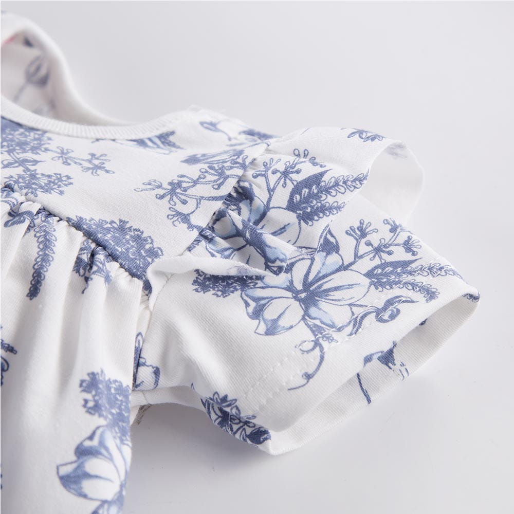 Weißes Mädchen-Body-Tunika mit blauen Blümchen