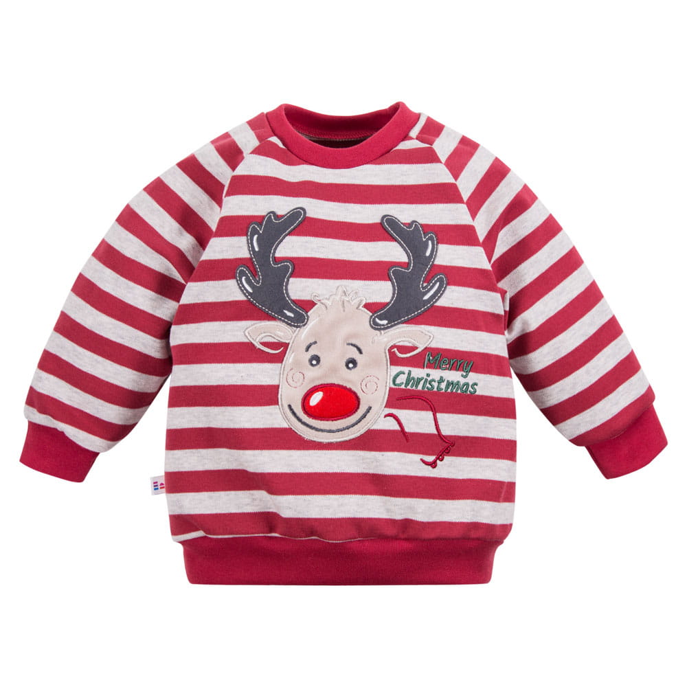 Weihnachtspyjama in Bordeauxrot mit Streifen und Rentier