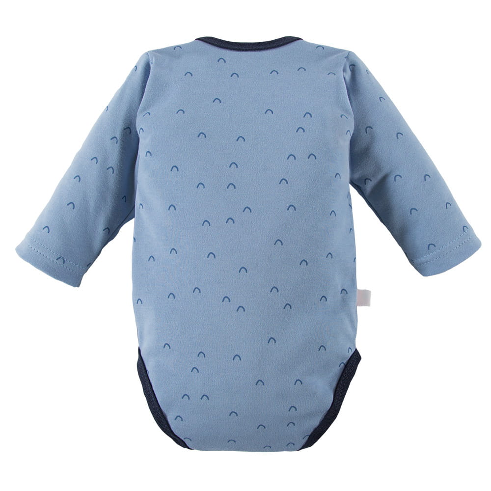 Wickelbody im 2er-Pack. Wickelbody eignen sich ideal für die ersten Lebensmonate Ihres Kindes. Mütter wählen meist Wickelbody für ihre Kleinen. Sie sind ein Muss in jeder Babyausstattung. Alter des Kindes: Von 0 bis 3 Monaten Kollektion: S&M Material: 100 % hochwertige Baumwolle Struktur/Materialart: Strickware Pflegehinweise: Maschinenwäsche bei 40 °C, nicht im Wäschetrockner trocknen Muster: Farbe – Blautöne Ärmel: Langarm Verschluss: Wickelverschluss Verarbeitung: Weiche Paspel Herkunft: 100 % polnisches Produkt Zertifikate: „Sicher für Kinder”, „Sicher für Babys” Die Babykleidung von Eevi wird mit Blick auf den Komfort und die Sicherheit der Haut Ihres Kindes hergestellt. Warum vertrauen wir der Marke Eevi seit Jahren so sehr? Die Produkte werden mit Sorgfalt und unter Verwendung von Materialien höchster Qualität genäht. Bei der Herstellung von Babykleidung verwenden wir ausschließlich ökologische Farben, die für die Haut von Kindern und Babys unbedenklich sind. Die Stickereien in unseren Produkten sind von innen gesichert, damit sie die empfindliche Haut des Kindes nicht reizen. Alle Druckknöpfe und Verschlüsse, die wir in unseren Produkten verwenden, sind nickelfrei.