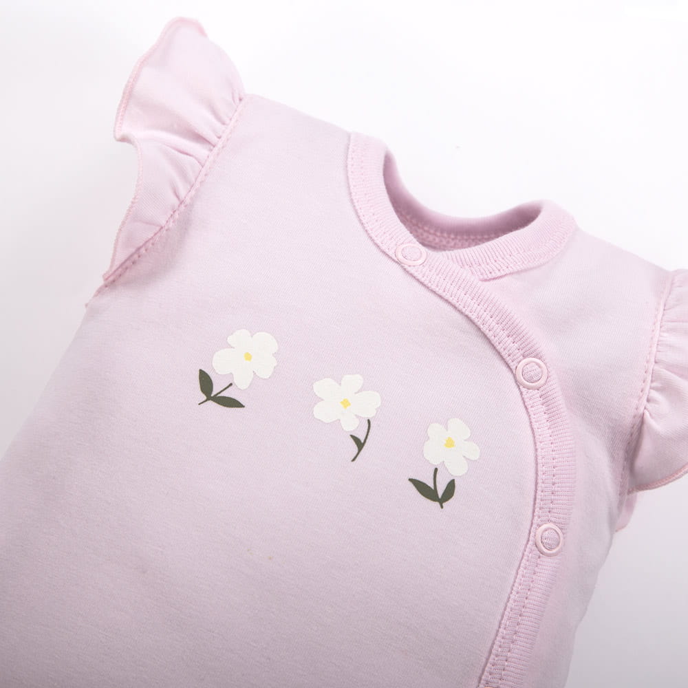 Wickelbody mit Trägern, rosa mit Blumen
