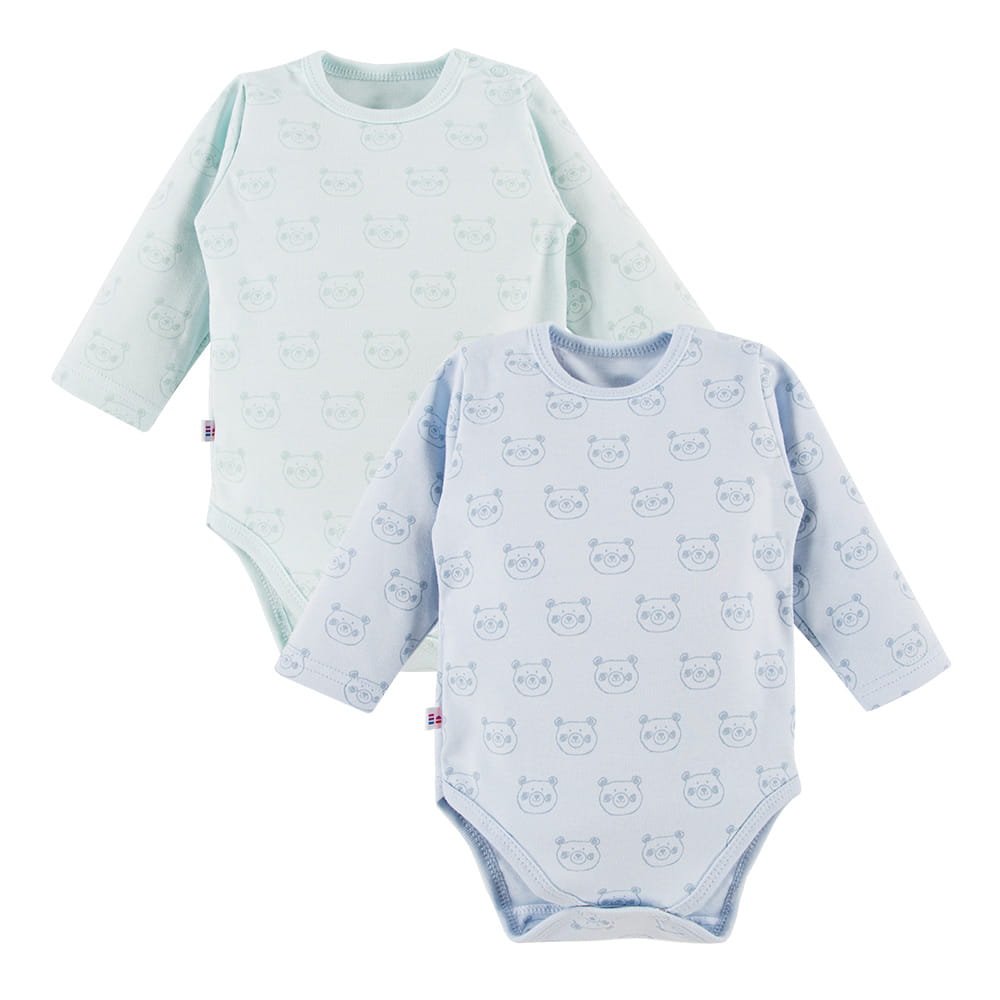 2-pack of long-sleeve baby bodysuits from the Big Bear Collection is a practical and comfortable set for little ones. The pack includes two bodysuits with a cute bear pattern – one in blue and the other in mint.