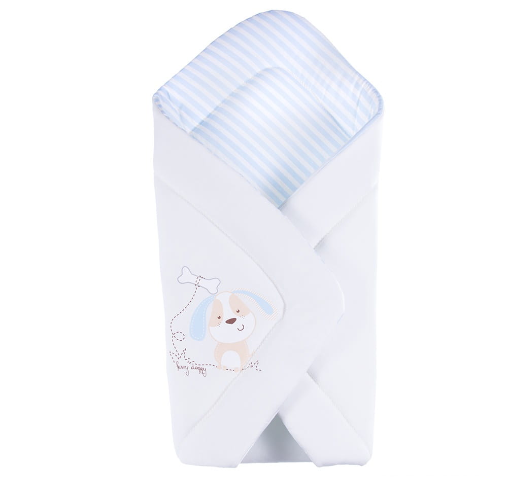 Swaddle blanket from the "Animals" collection made from soft and silky cotton in seven colors, with geometric patterns. At the corner you will find a print of a happy animal made with paint safe for children. Velcro fastening. Made in Poland, certified "Safe for Children". 100% Cotton