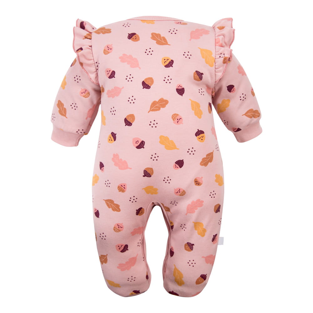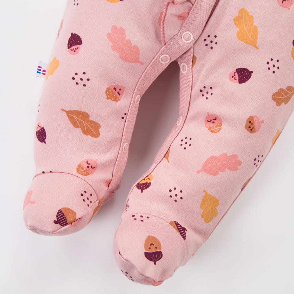 Baby romper pink with acorns and feet – Fluffy Tails Collection