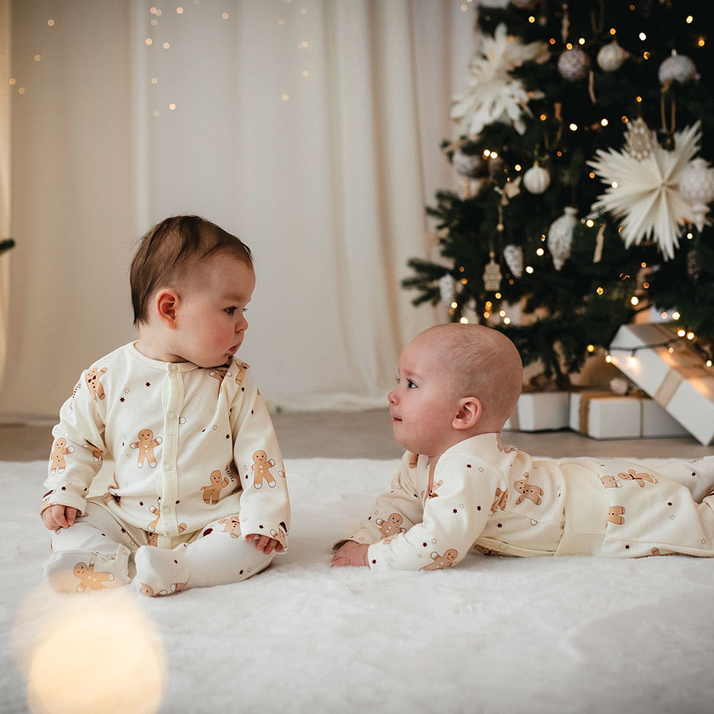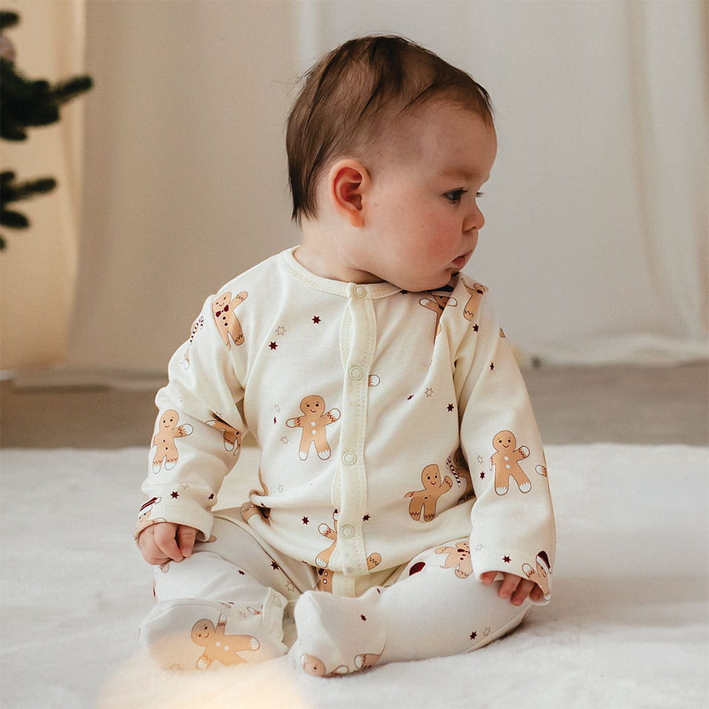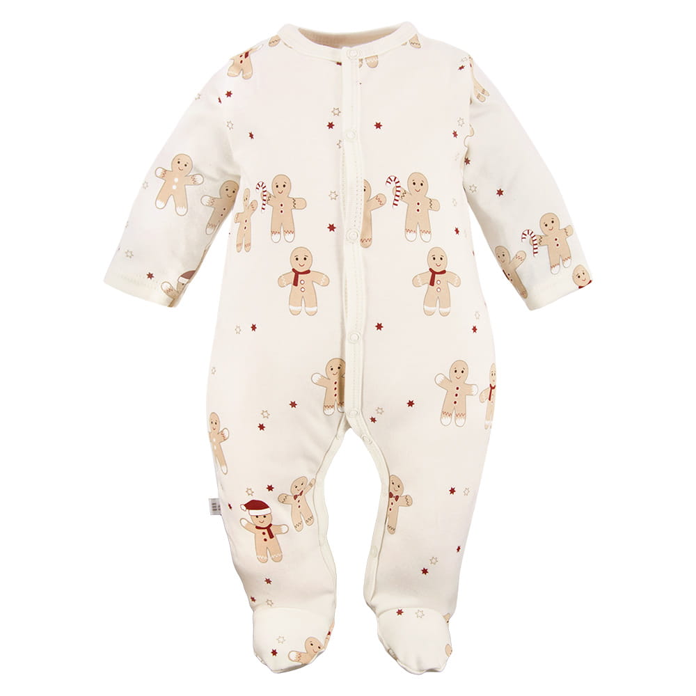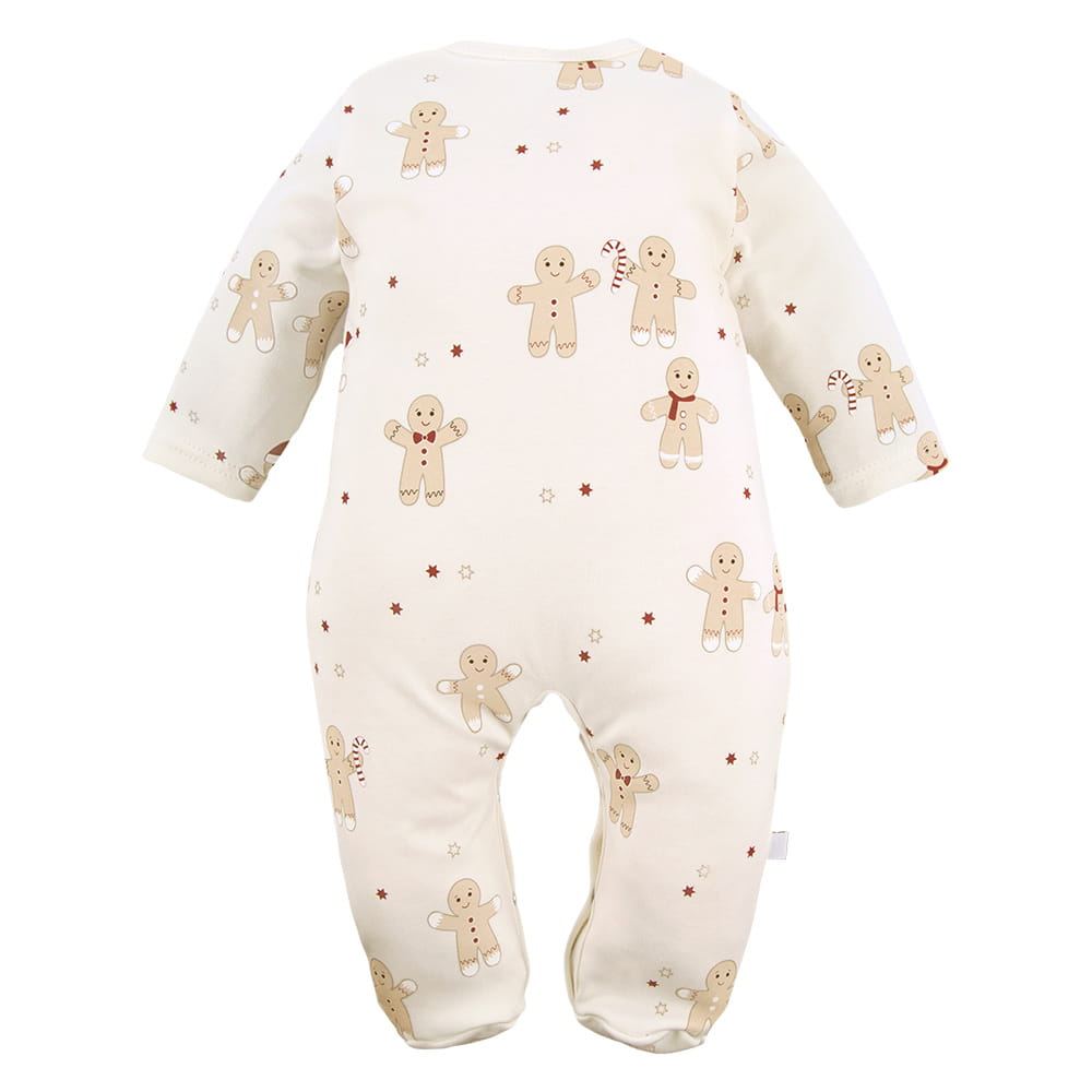 Baby sleepsuit with Christmas gingerbread and star pattern ecru