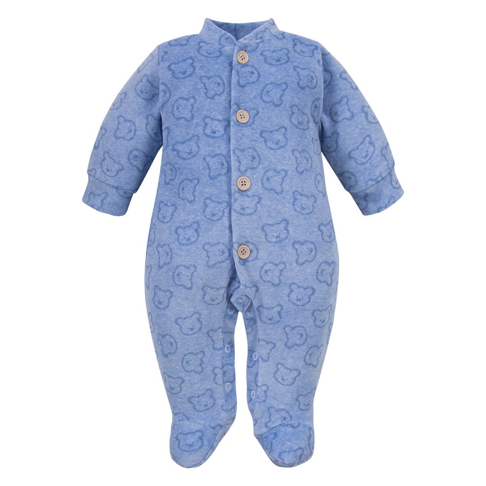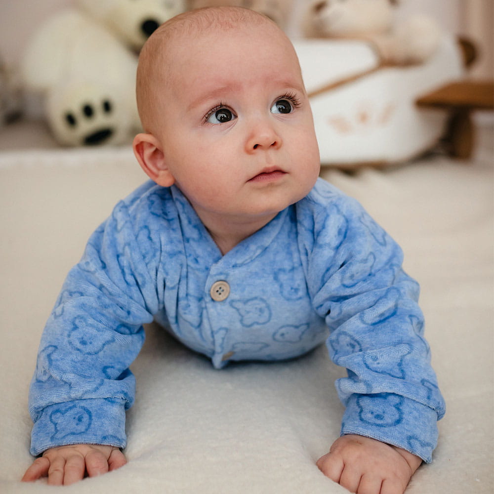 Baby velour sleepsuit blue with bears