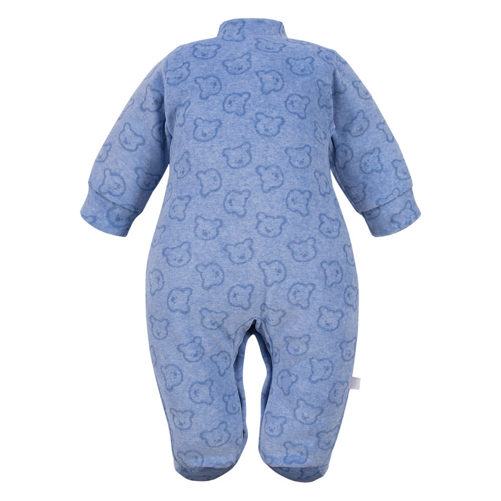 The baby velour sleepsuit in blue with a cute bear pattern is a comfortable and practical outfit for newborns and infants. Made of soft velour (80% cotton, 20% polyester), it provides warmth and gentle comfort for sensitive baby skin. Button fastening and snap fasteners in the crotch allow for a quick and convenient diaper change.