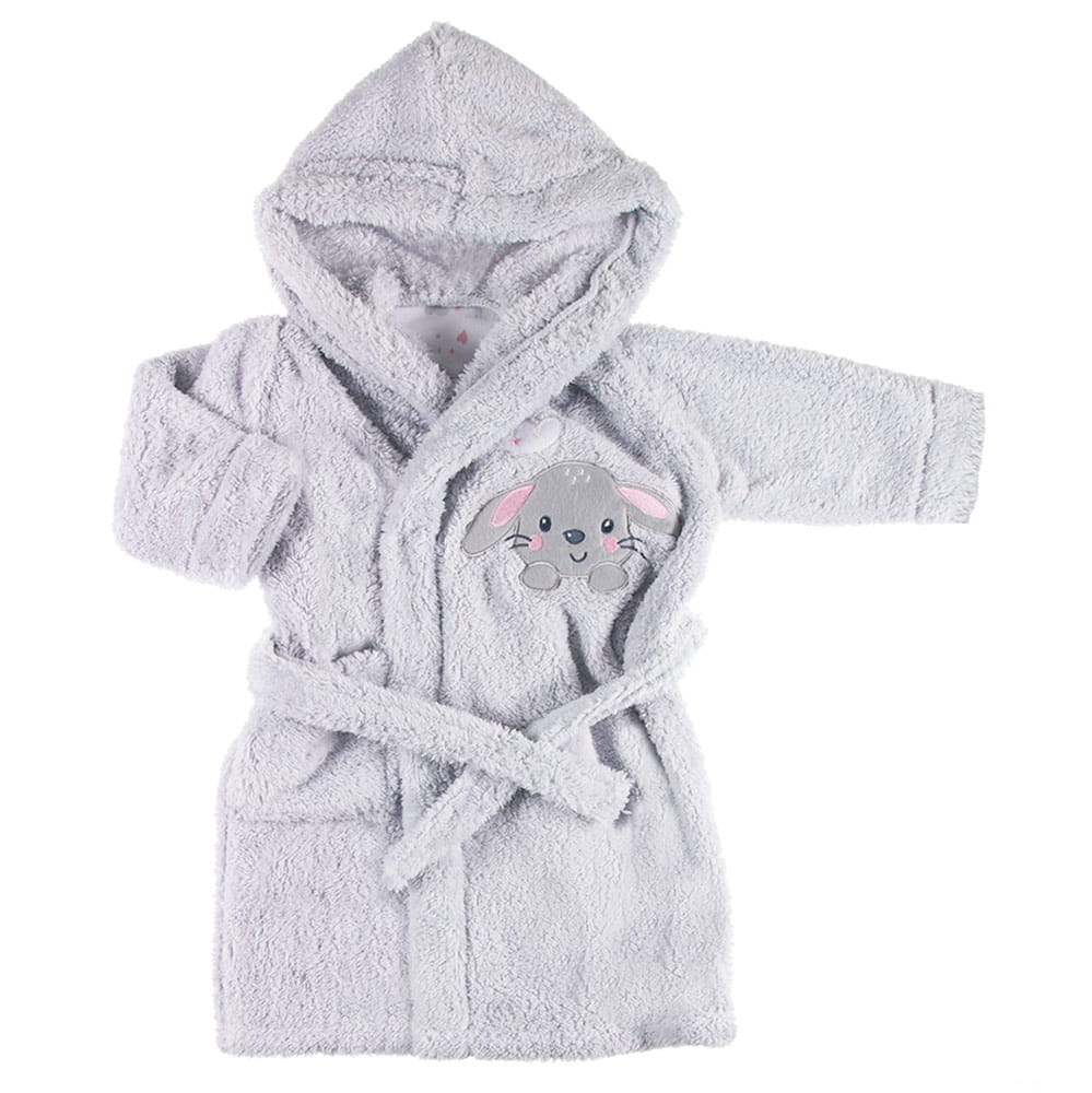 Bathrobe from "Family" collection made of soft and warm fur knitwear in several colors. On the front there is a large embroidery of an animal. Tie at the waist. Made in Poland, granted "Safe for a child" certificate. 100% polyester