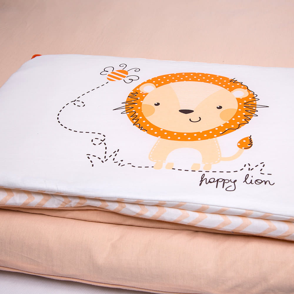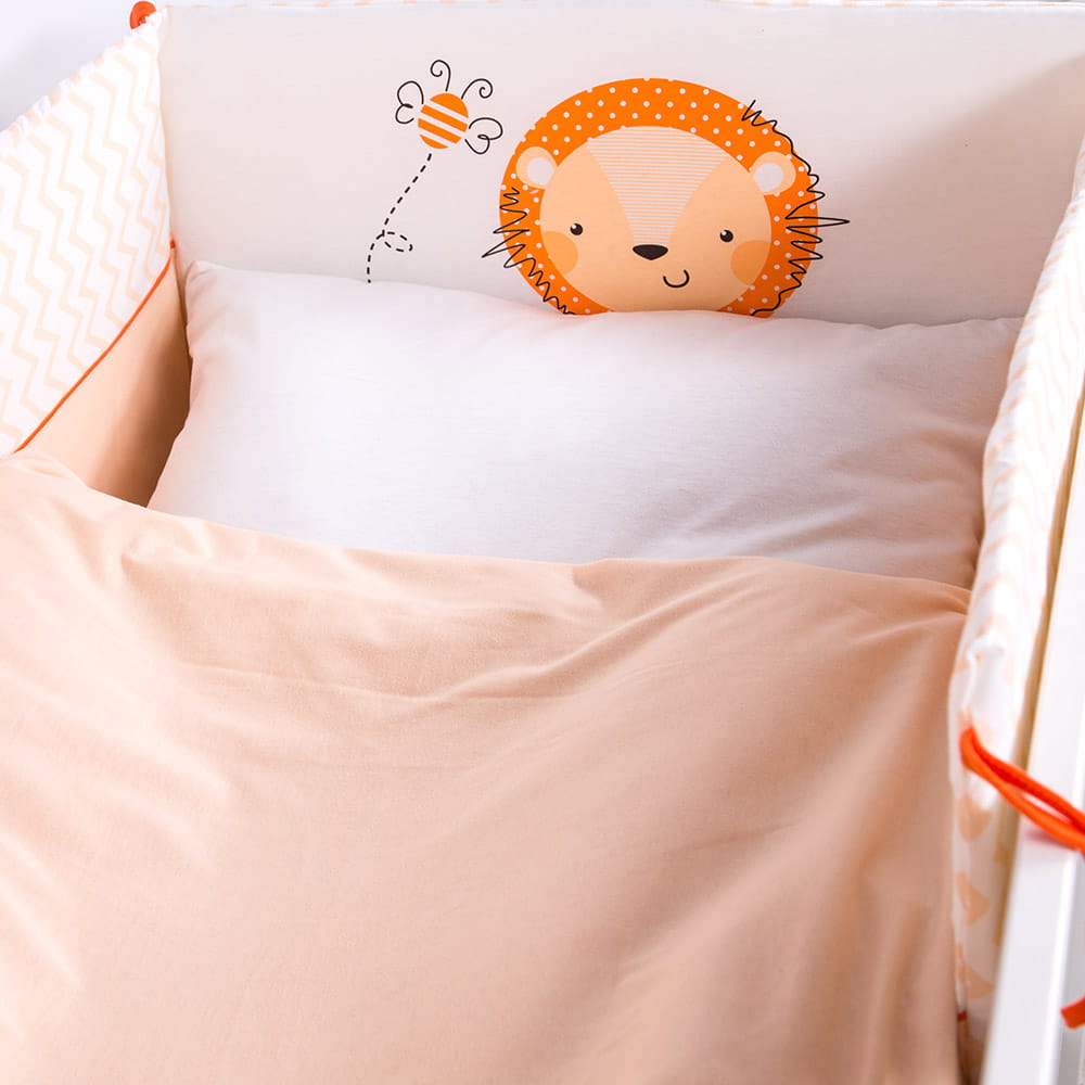 Bedding for children orange&ecru with a cute lion