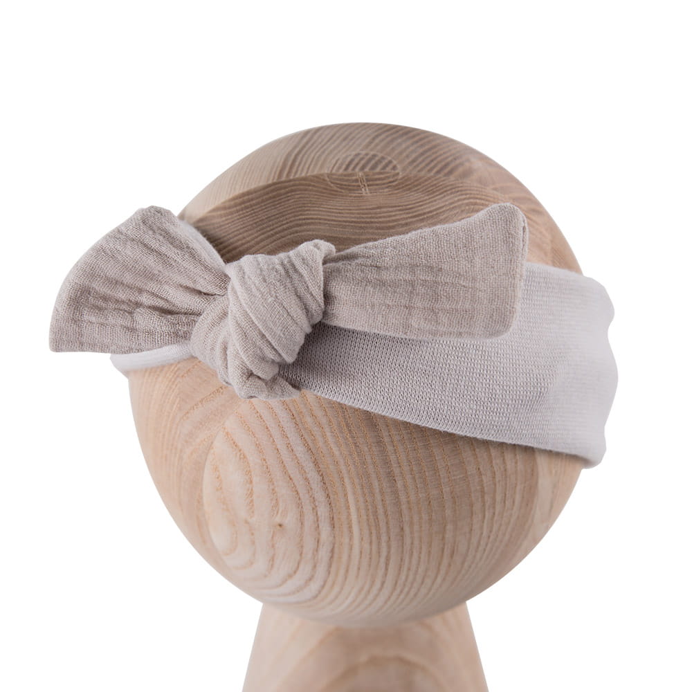 Beige girls’ headband with muslin bow – Eevi Basic collection