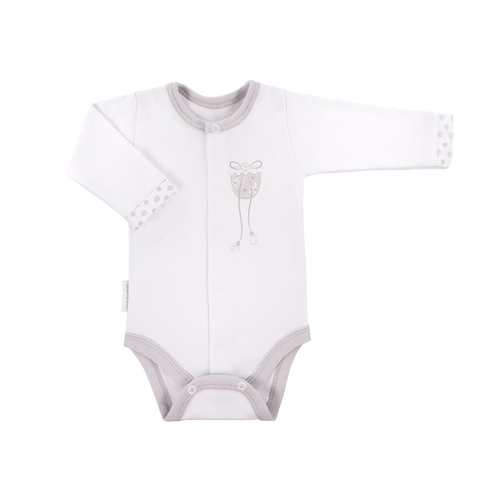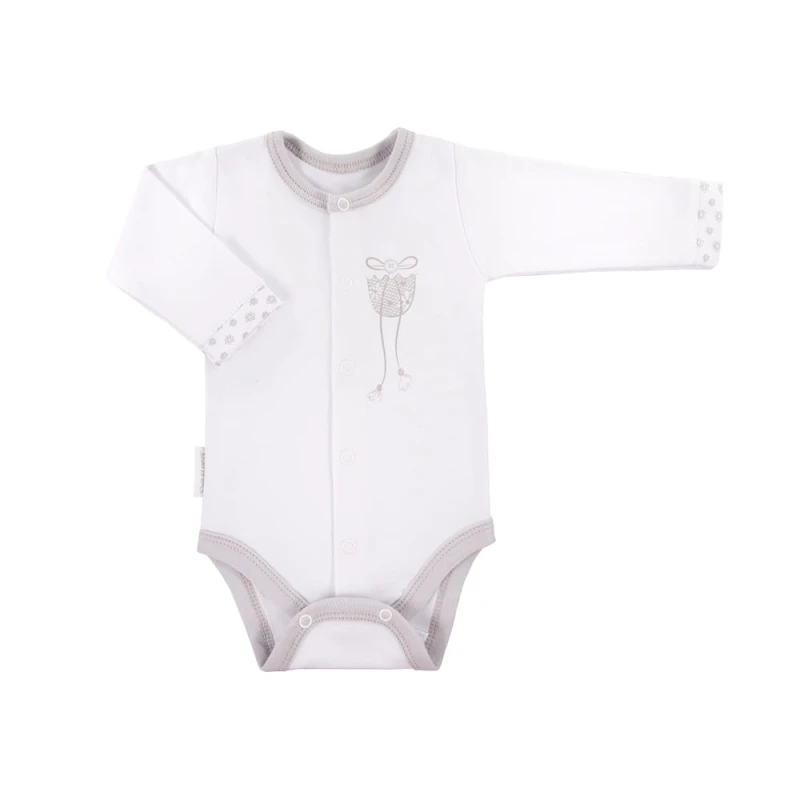 Bodysuit cardigan with long sleeves from "Chic" collection sewn from soft and pleasant to the touch knit. On the front there is a decorative print. The cut allows it to be fully unbuttoned, making the cloth functional and comfortable. Perfect in the first months of life. Finished with a soft piping. Snaps used in our products do not contain nickel. Made in Poland, certified "Safe for children". 100% Cotton