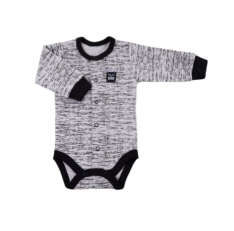 Bodysuit cardigan with long sleeves from POWER collection made from soft and pleasant to the touch cotton knit. At the front there is a small patch protected from the inside so that it does not irritate the delicate skin of the child. The cut enables full opening, making the body functional and comfortable. Finished with a soft contrasting black trim and welt at the sleeves. Baby bodysuits are perfect for the first months of a child's life and belong to the most frequently chosen assortment by mothers.