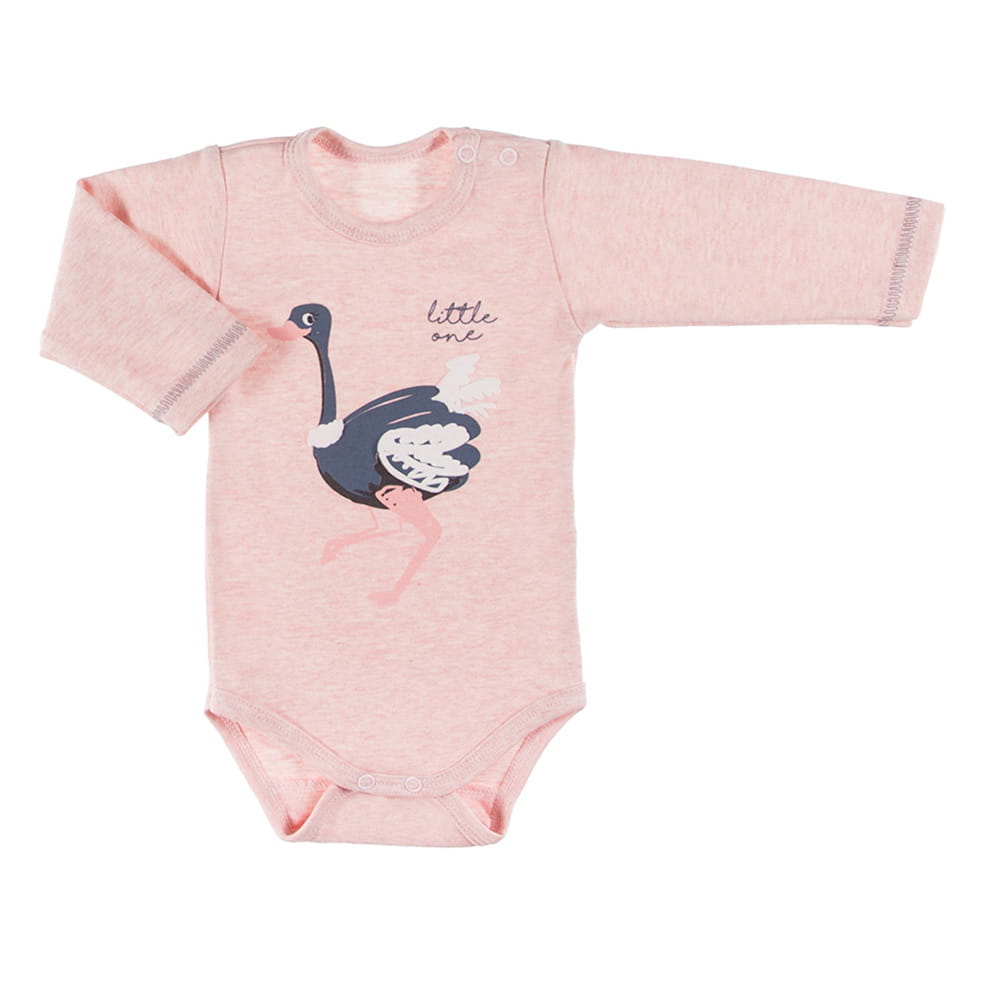 Baby long sleeve bodysuit from EMU collection, made of soft and pleasant to the touch knit. At the front there is print made in eco-paints. The cut allows for a full opening, making the clothes functional and comfortable. Finished with soft trimming. Snaps used in our products do not contain nickel. Manufactured in Poland, granted the "Safe for Children” certificate. 100% cotton