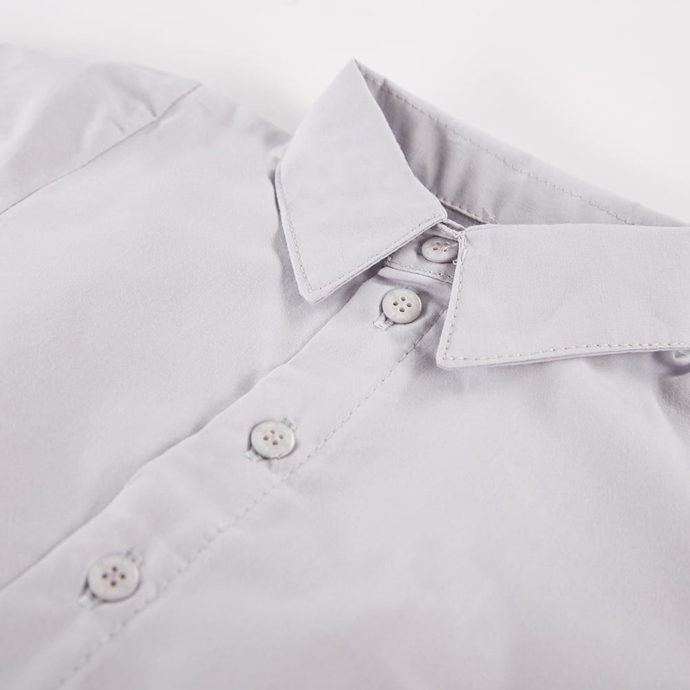 Shirt-body from the Ceremony Collection, made of soft shirt fabric on top and knit fabric at the bottom, is entirely in grey, making it an elegant choice for little ones. The collar adds a touch of sophistication.