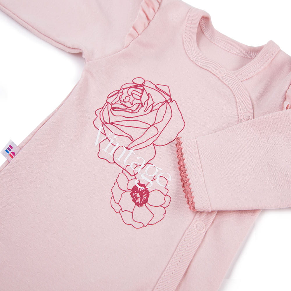 A girl's body from the "ROSES" collection, made of soft and pleasant to the touch cotton fabric. Body finished with a soft trim. The body cannot be closely related to the first period of a baby's life and will continue to follow throughout the mother's assortment.