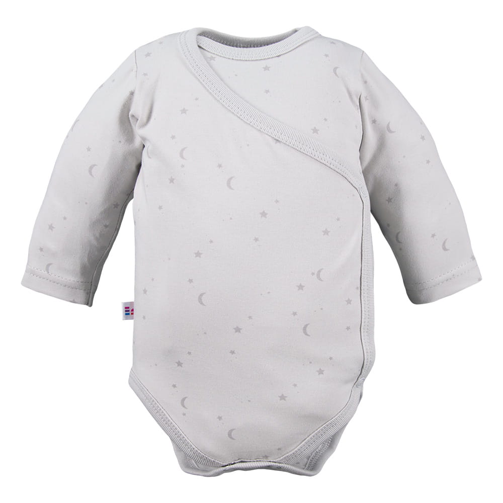 Set of 3 wrap bodysuits in subtle ecru and shades of grey with a cute star pattern is a perfect choice for the first months of your baby’s life. Wrap bodysuits are the most popular choice among parents and are an absolute must-have in every baby layette.