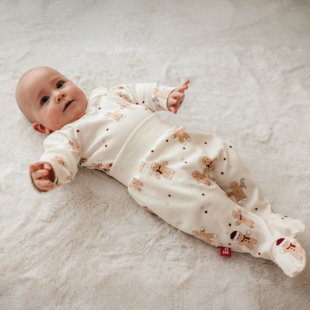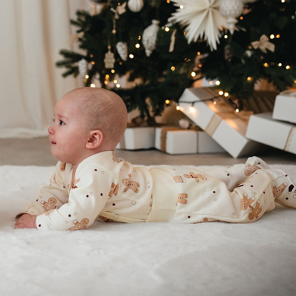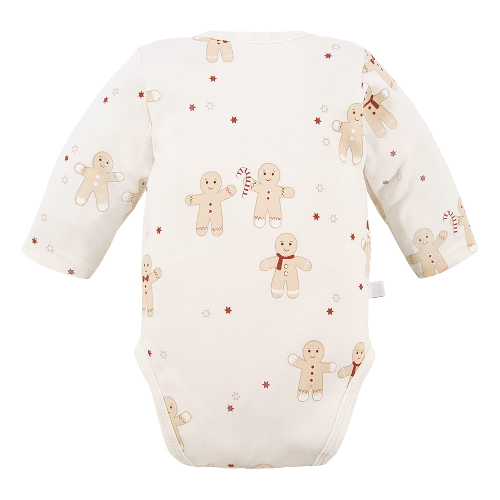 Cardigan bodysuit with Christmas gingerbread and star pattern ecru