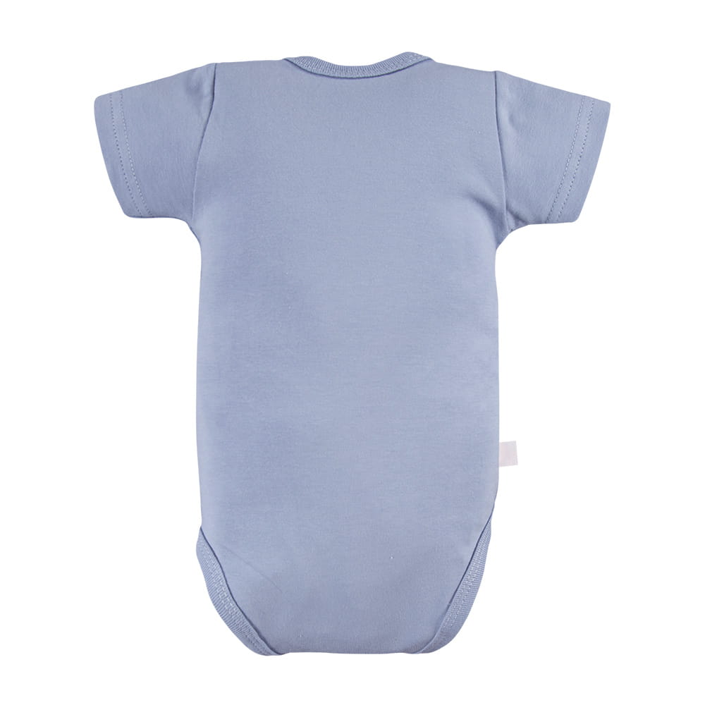Blue wrap baby bodysuit with short sleeves is a comfortable and practical choice for infants in their first months. The delicate balloon print gives the outfit a subtle, childlike charm.