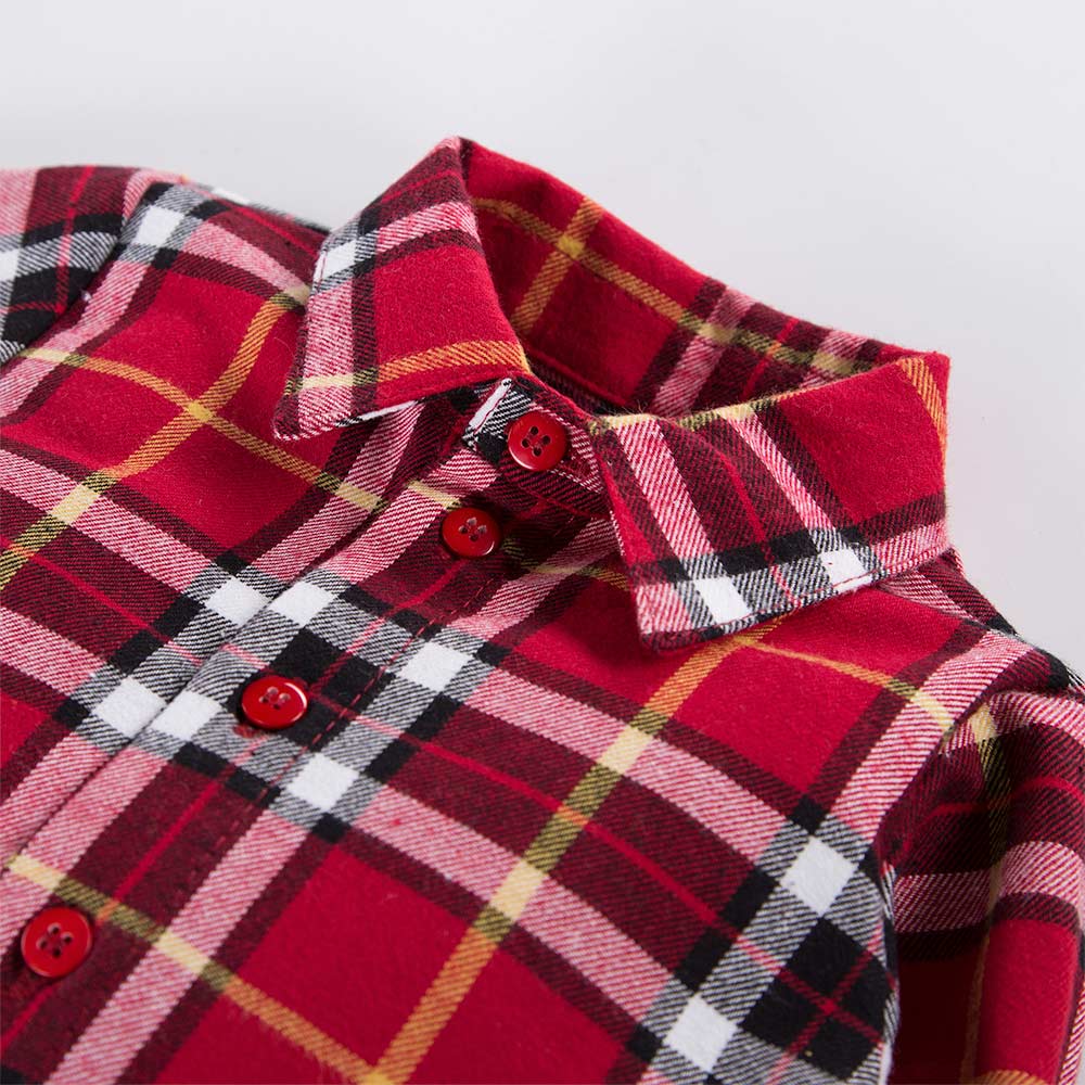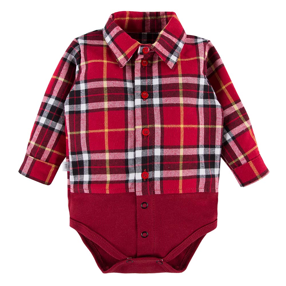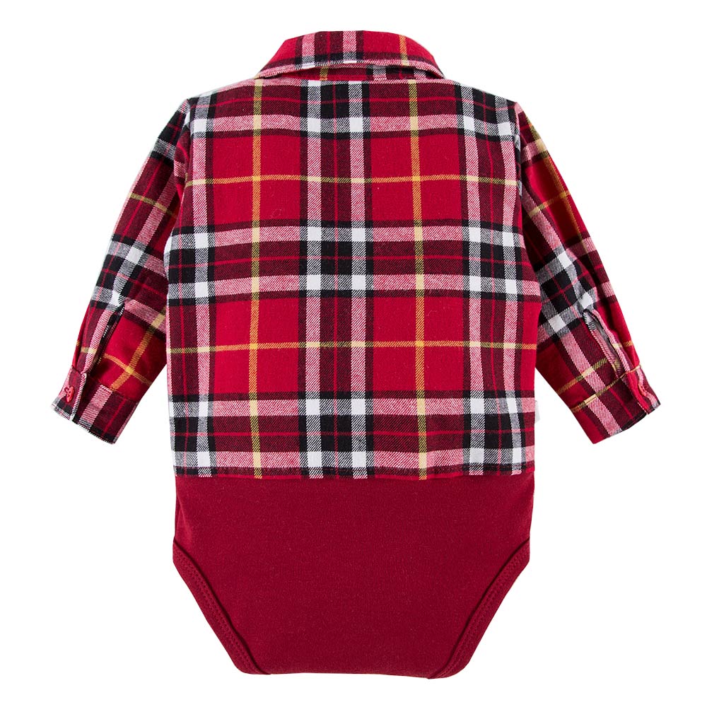 Shirt-body from the Ceremony Collection, made from soft flannel fabric on top and cotton knit on the bottom, is an elegant choice for little ones. The classic burgundy check pattern gives it a timeless character, and the collar adds a touch of sophistication.