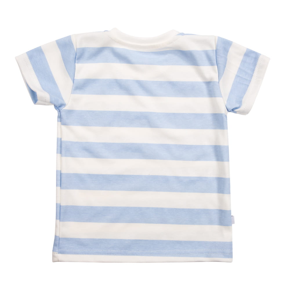 Stylish and practical, the children's t-shirt in blue stripes is a great everyday option. Made of soft cotton, it ensures comfort and freedom of movement. The classic stripe design pairs well with a variety of outfits.