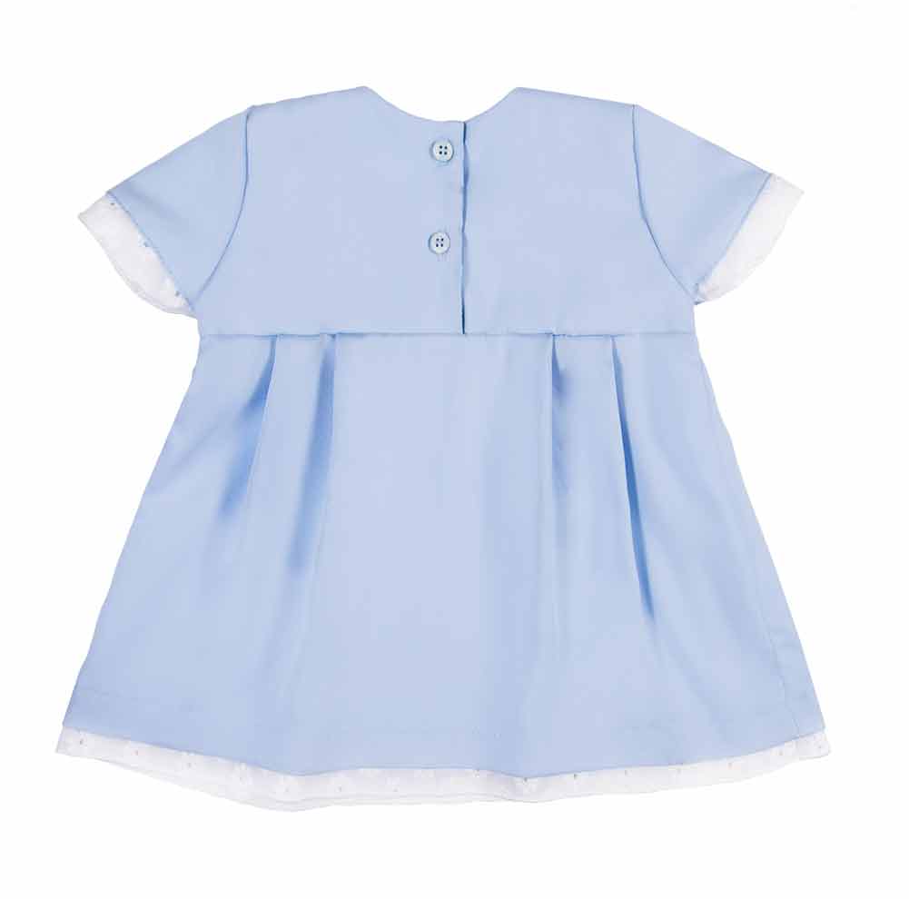 Girls’ dress from the Ceremony collection, made from soft and pleasant-to-touch blue fabric, is an elegant and comfortable choice for little girls. White eyelet lace is sewn on the sleeves and hem, giving the dress a subtle, girly charm.