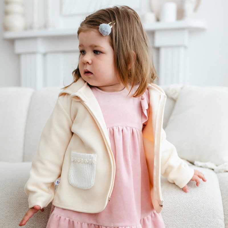 Ecru Fleece Hoodie Jacket for Kids