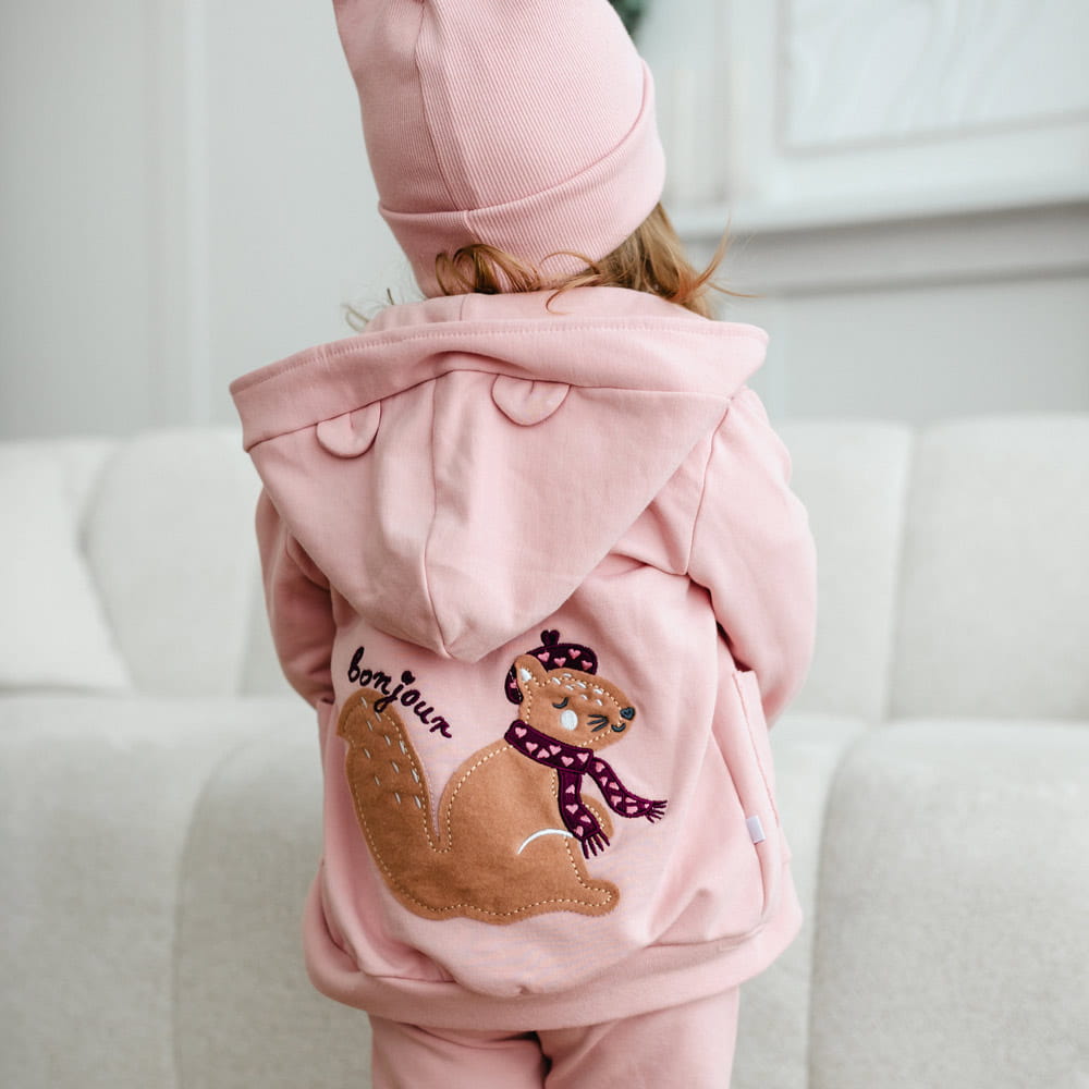 Girls' pink tracksuit with squirrel embroidery on the back - Fluffy Tails Collection