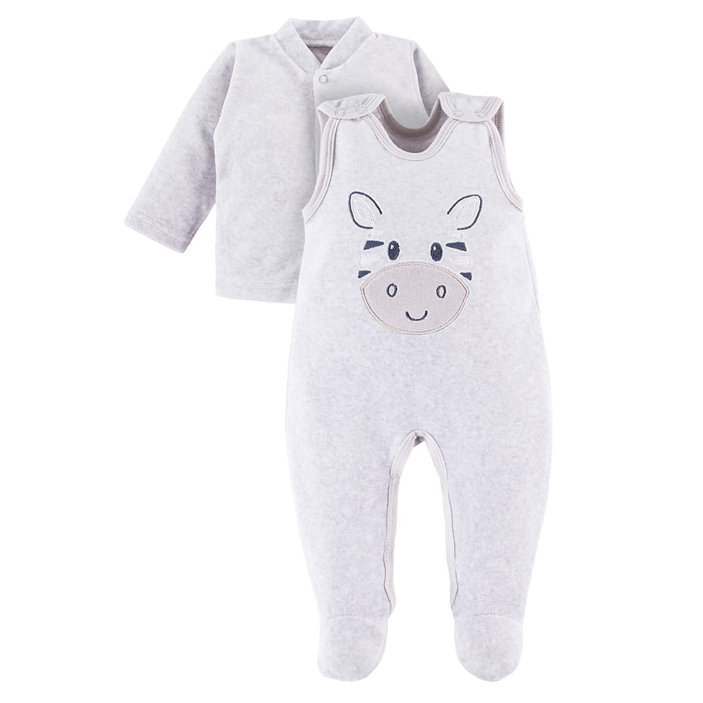 Grey velour baby set with zebra embroidery