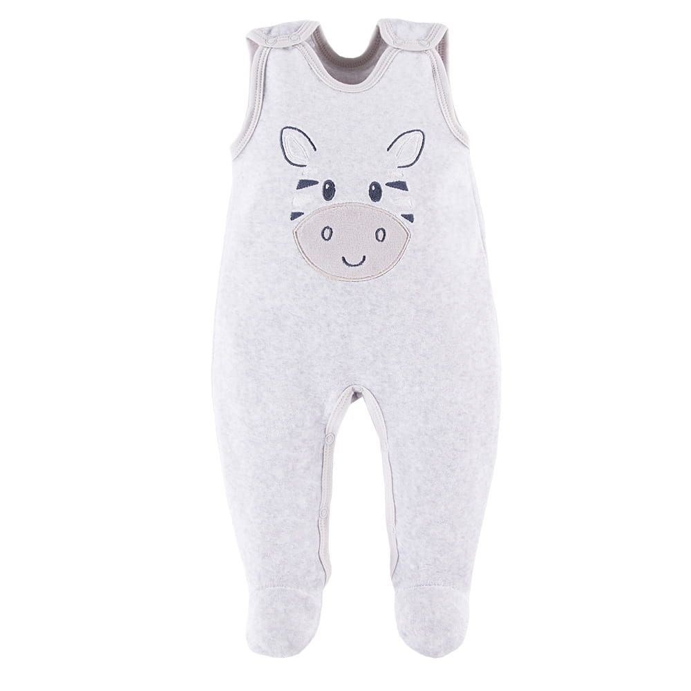 Velour baby set from the Baby Love collection, consisting of a sleepsuit and a cardigan, is an ideal choice for newborns and infants. The grey color combined with an adorable zebra embroidery gives the set a gentle, friendly, and playful character.