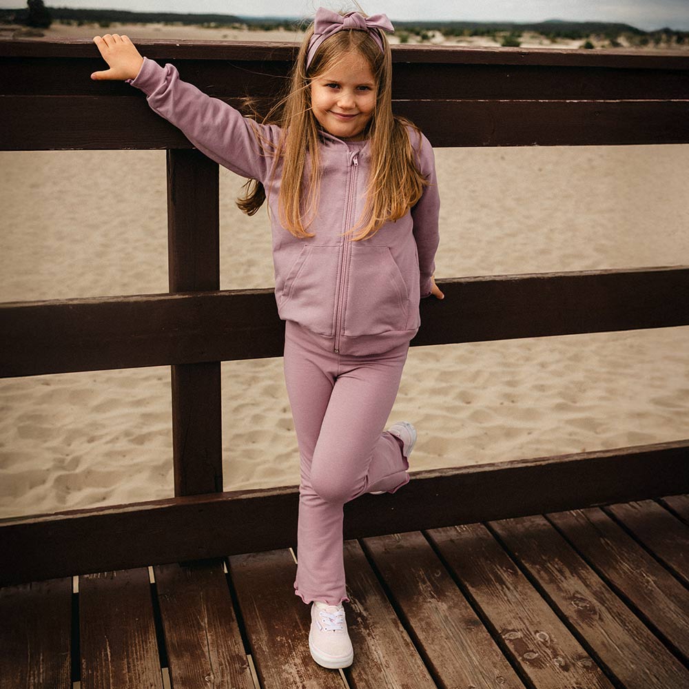 Stylish and comfortable children’s leggings made of 100% soft, breathable cotton. They feature a trendy flared design, delicate heather purple color, and an elastic waistband for a comfortable fit. Perfect for everyday wear – school, kindergarten, or walks – providing full freedom of movement and all-day comfort.Why choose Eevi leggings?