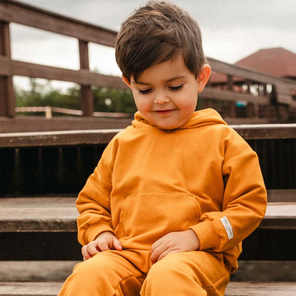 Practical and comfortable children’s sweatshirt made of 100% soft, breathable cotton. It features a warm honey color, classic kangaroo style, a practical front pocket, and a functional hood. Perfect for everyday wear – school, kindergarten, or walks – providing full freedom of movement and all-day comfort.Why choose Eevi kangaroo hoodies?