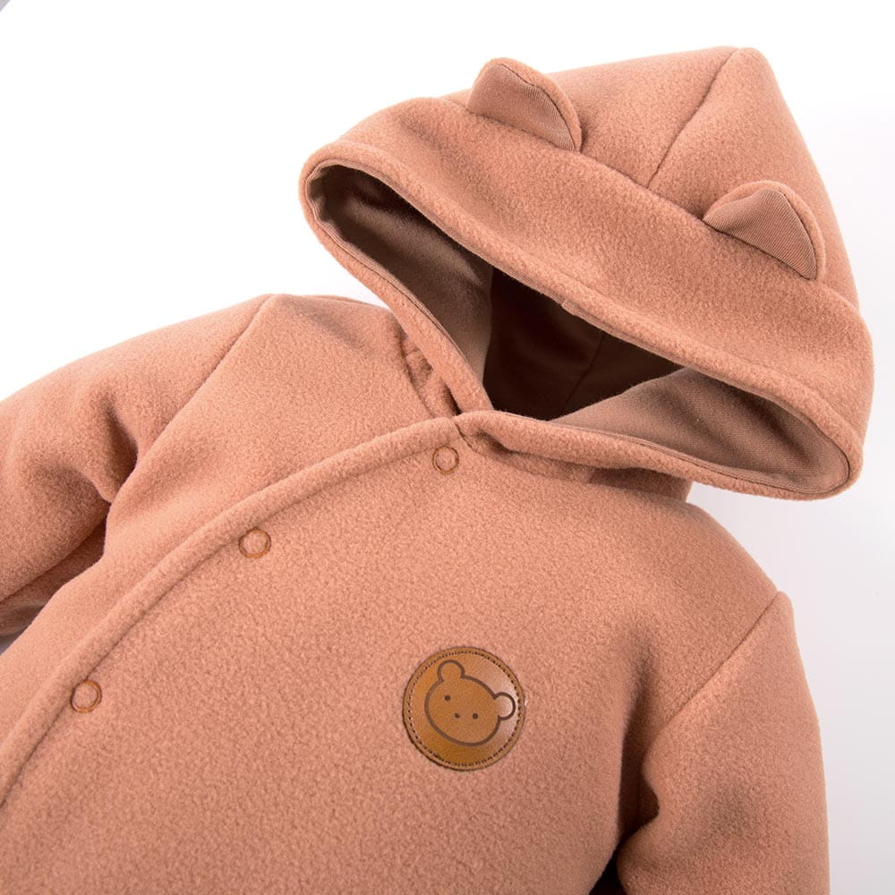 Hooded pramsuit fleece with bear patch