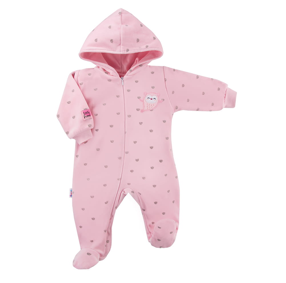 Hooded velvet playsuit SNOW pink