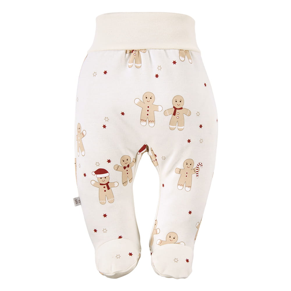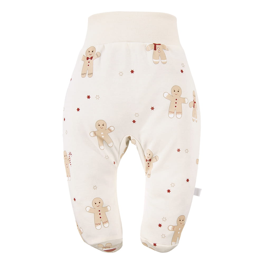 Joggers with feet with a Christmas gingerbread and star pattern ecru