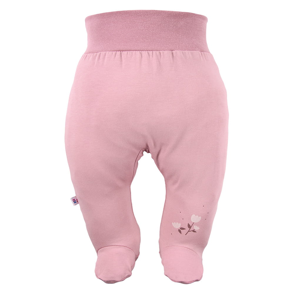 Pink baby footed joggers with a flower pattern are perfect for any season. They are suitable for babies born in winter or summer. Exposed feet are a common problem for parents – socks slip off, so parents make sure that the baby's feet stay warm and protected from the cold. These joggers provide comfort and freedom of movement.