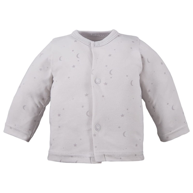 Baby kimono shirt with a star pattern in grey from the Petite Collection is a perfect choice for the first months of your baby’s life. The kimono shirt is a basic item in a newborn’s wardrobe – easy to put on, soft, and gentle on sensitive skin.