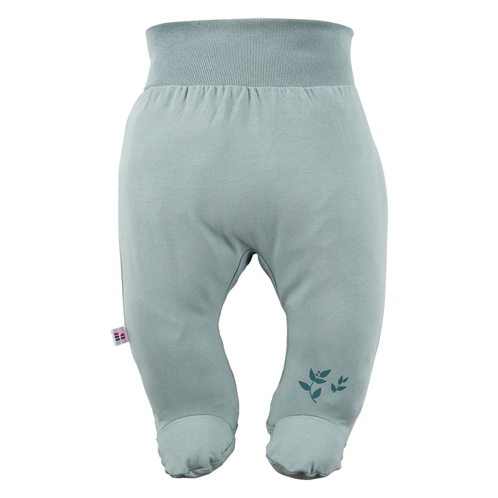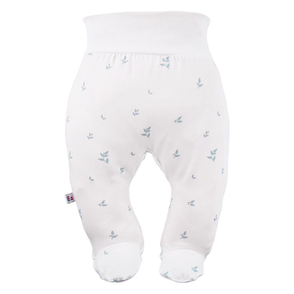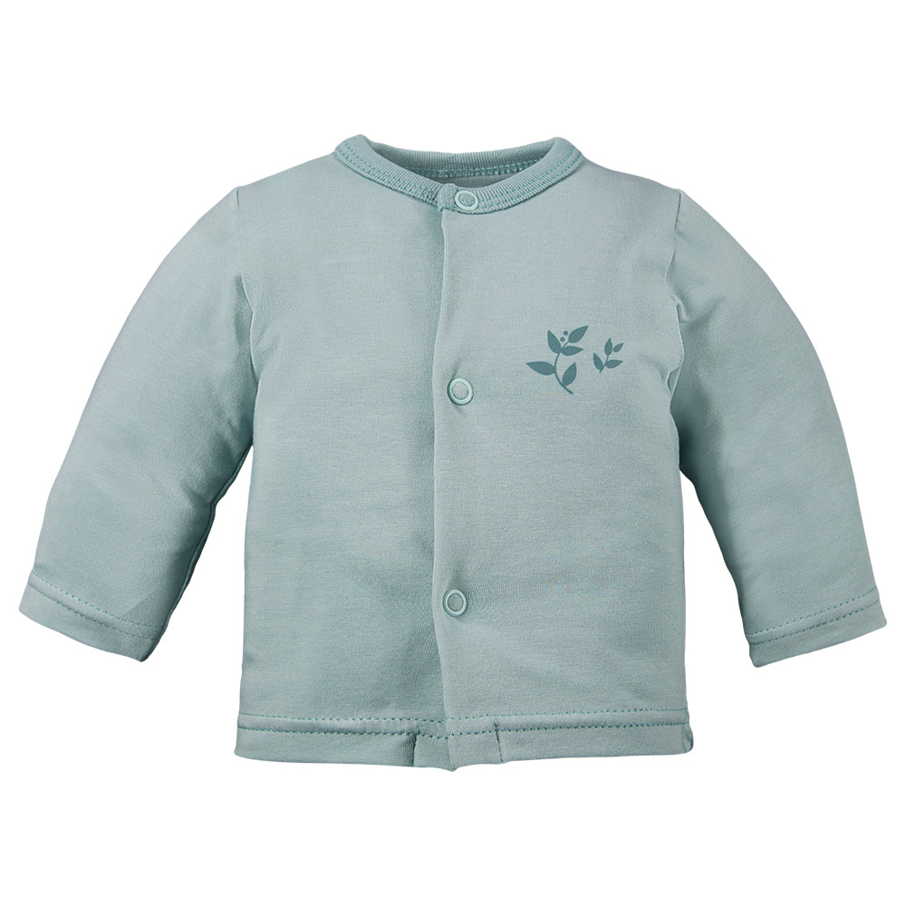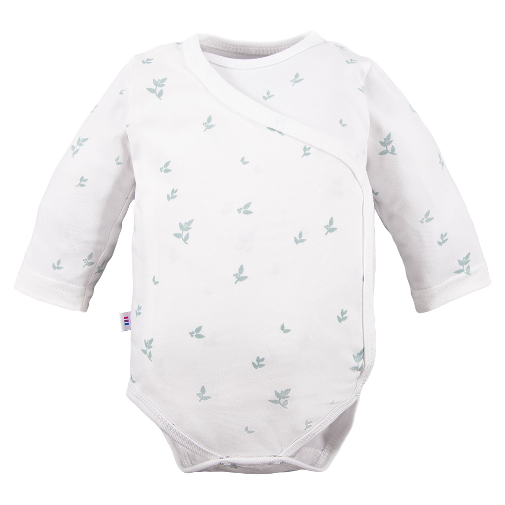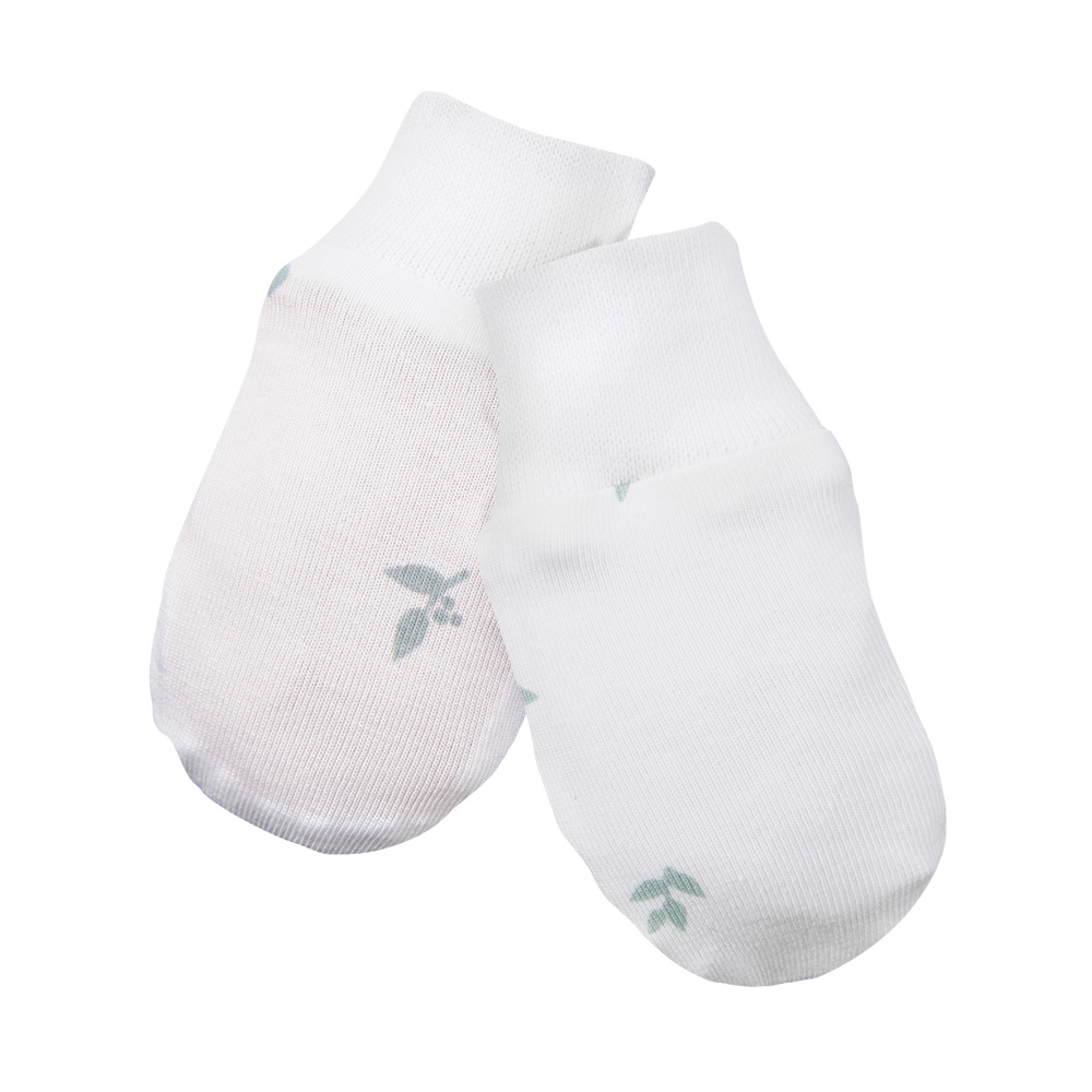 The color palette in shades of mint and white with a subtle leaf pattern makes this a universal and timeless newborn set, also perfect as a gift.