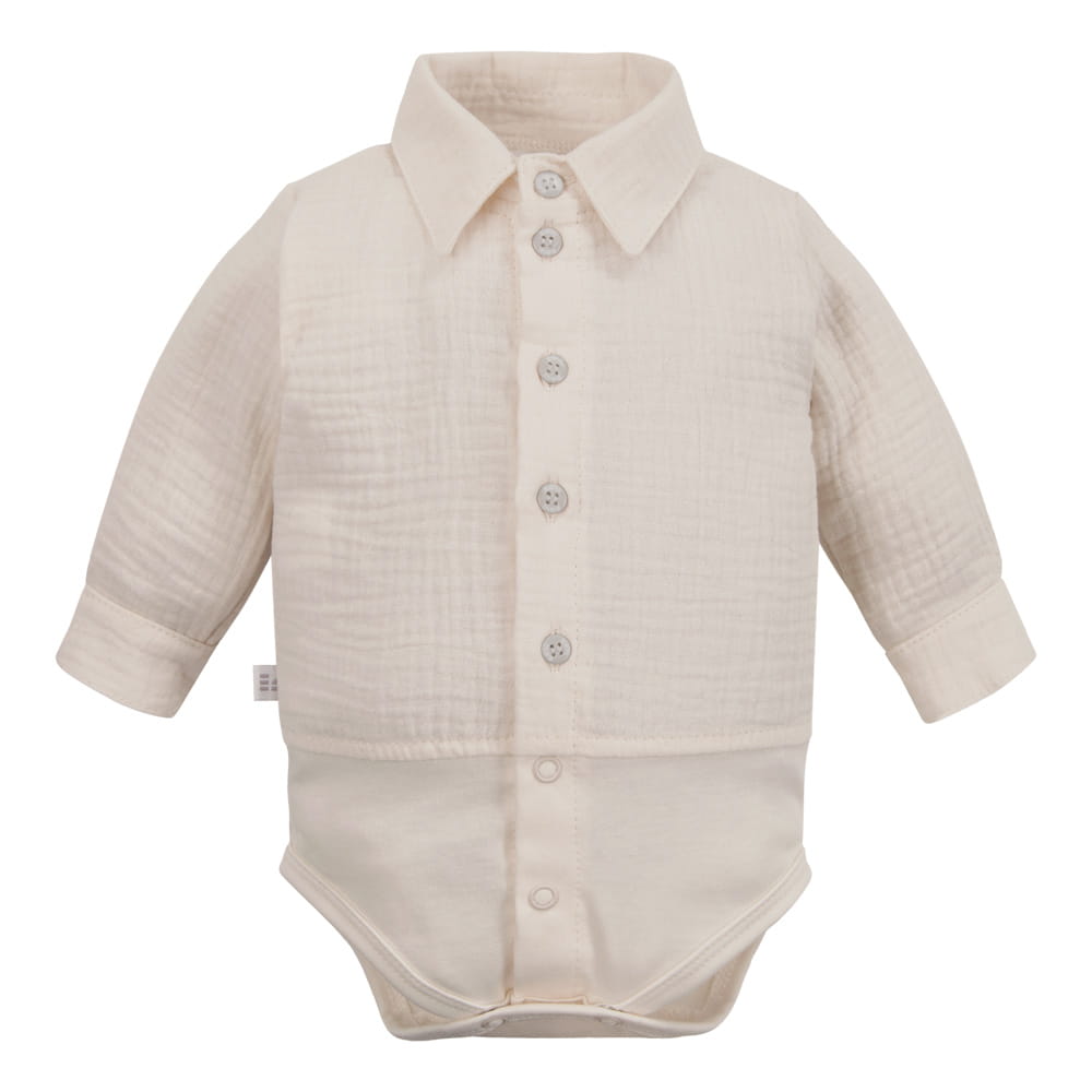 Muslin shirt-style bodysuit with collar and buttons beige