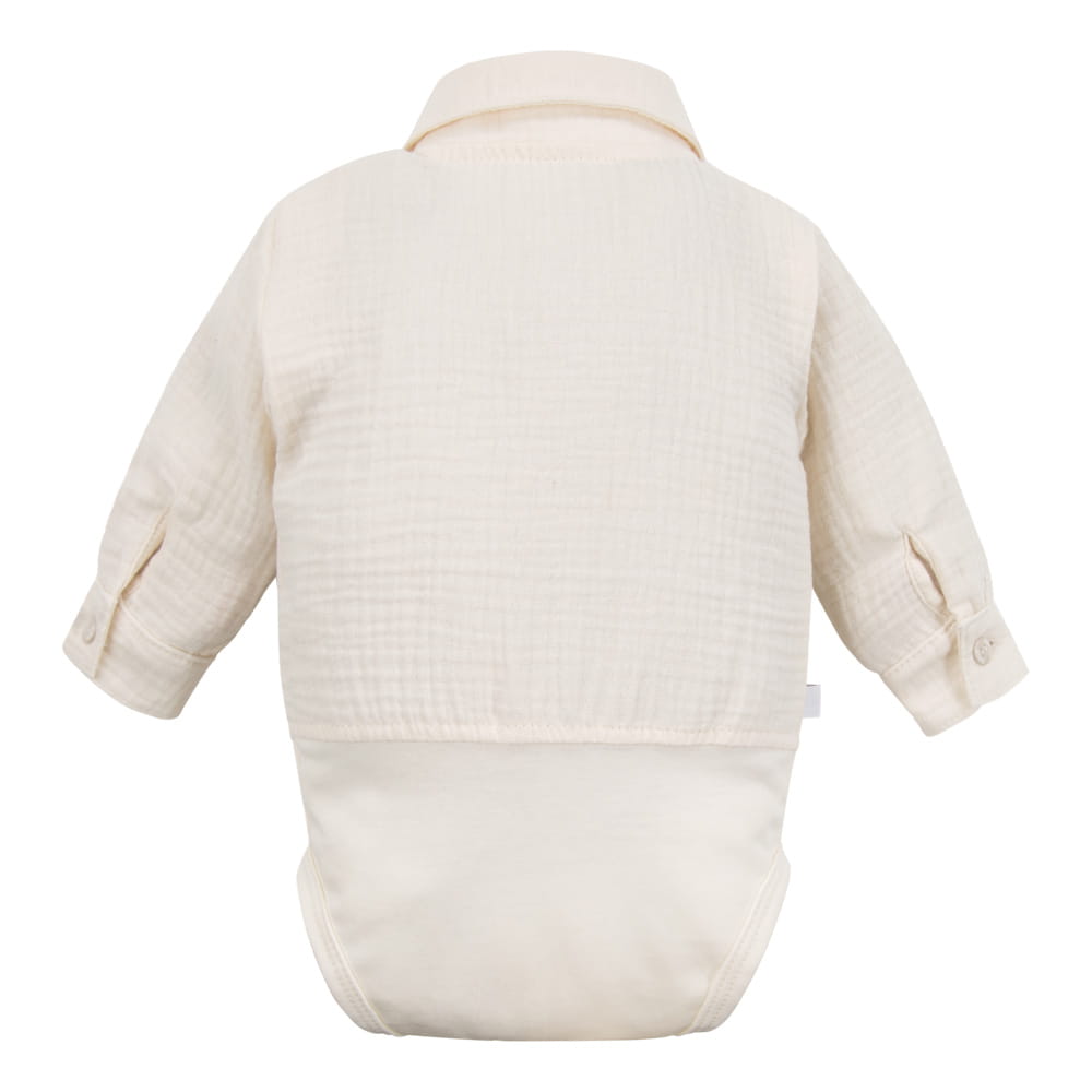 Muslin shirt-style bodysuit with collar and buttons ecru