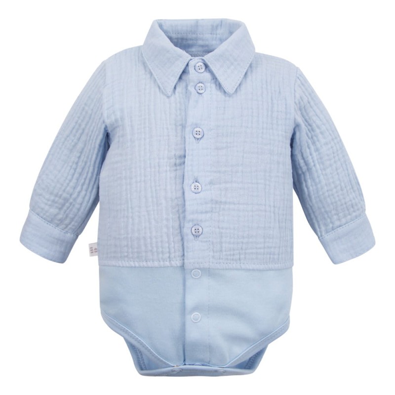 Muslin shirt-style bodysuit with collar and buttons light blue