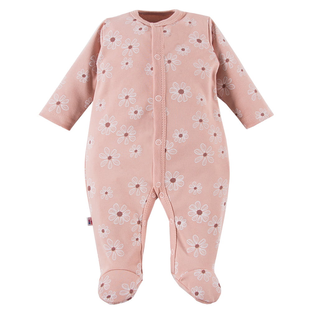 Sleepsuit from the "DAISY" collection, made of soft and pleasant to the touch cotton fabric. Children's sleepsuits will be perfect for up to 3 years of age. Perfect for babies who discover themselves at night while sleeping. Instead of pajamas, they will wear sleepsuit. Our store offers sleepsuits up to size 104. Moms most often choose sleepsuits for their babies. It is a must have for every baby or preschool layette .