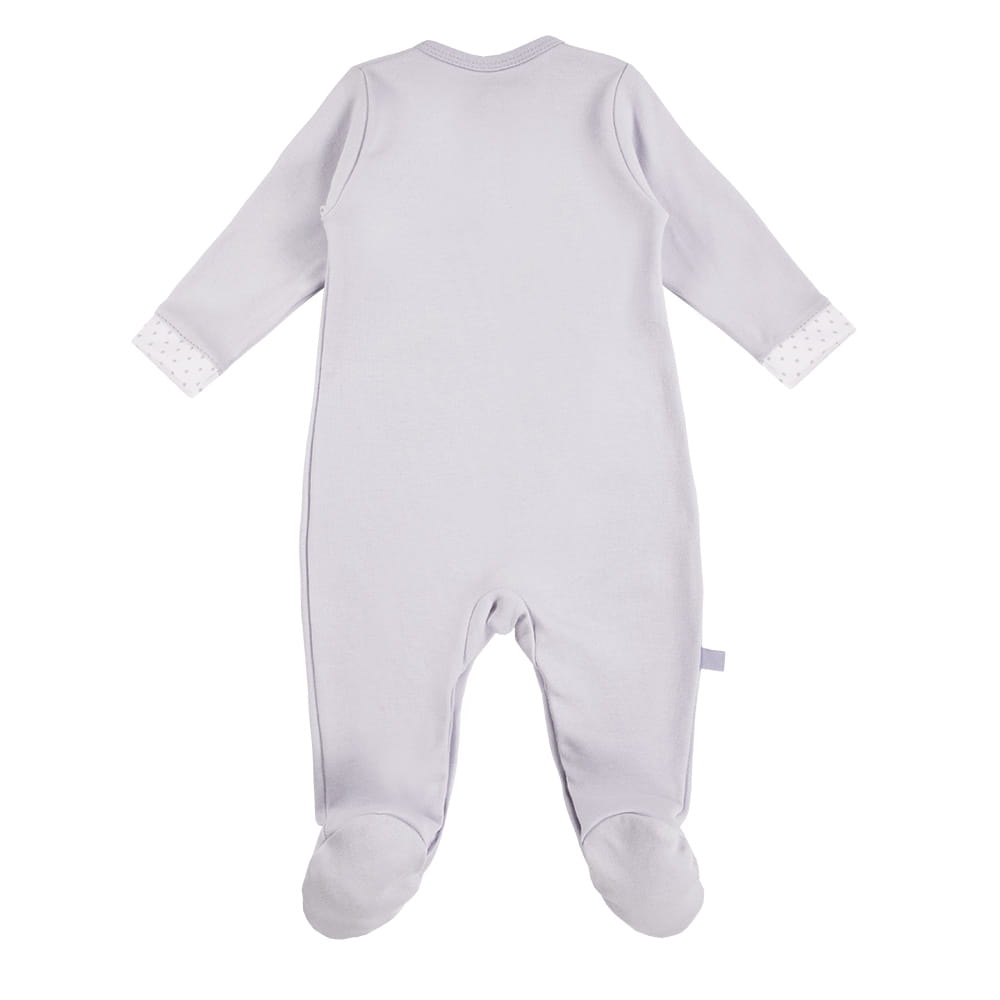 On the front, there is a cute sheep embroidery, secured on the inside to avoid irritating the baby’s delicate skin. The sleepsuit features a functional design with full-length snaps, making dressing and diaper changes easy. Sleeves are finished with cuffs with delicate prints, and soft trimming ensures extra comfort.