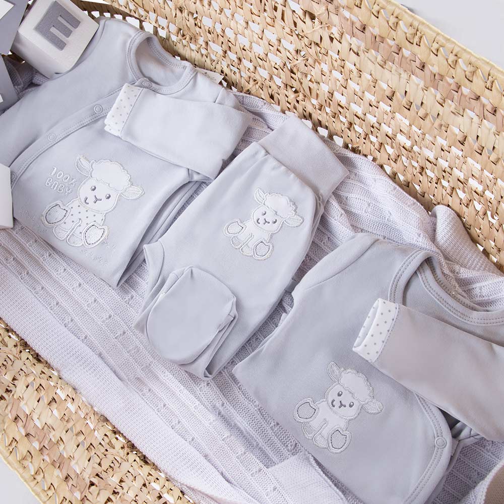 Gray Baby Sleepsuit with Sheep – Newborn Collection