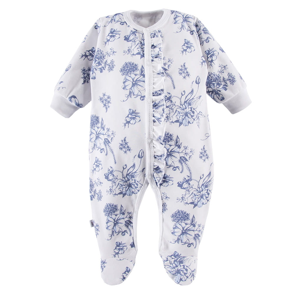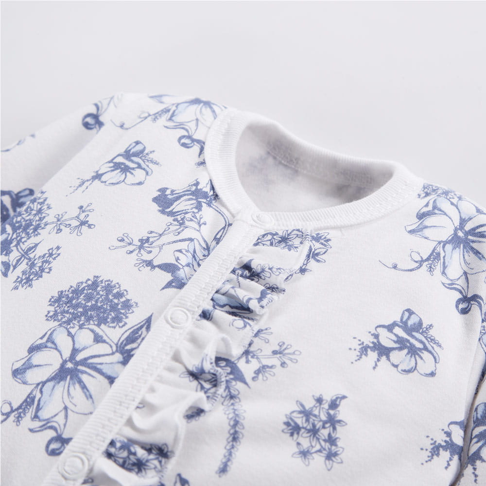 Sleepsuit with frill white with blue flower