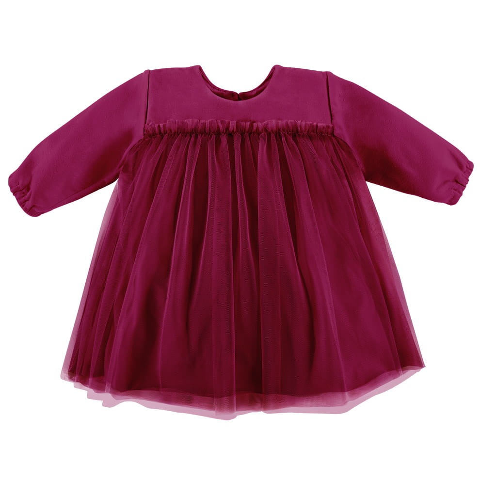 Girls' dress from the Ceremony collection in an elegant burgundy color is a stylish and unique option for the youngest. Made from soft and pleasant-to-touch cotton with a touch of elastane and lightweight tulle, it ensures comfort and a festive look.