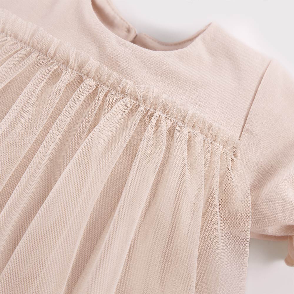 Beige Girl's Dress from the "Ceremony" collection, made from soft and pleasant-to-touch cotton and tulle. The decorative element of the dress is tulle sewn on top. The dress has a flared cut, and the sleeves are short with a delicate puff. There is a button closure at the back. Dresses for children and infants from the Ceremony collection are exceptionally elegant, and we make every effort to ensure that each dress is perfectly finished. Comfort and elegance are the guiding principles of the Ceremony collection.
