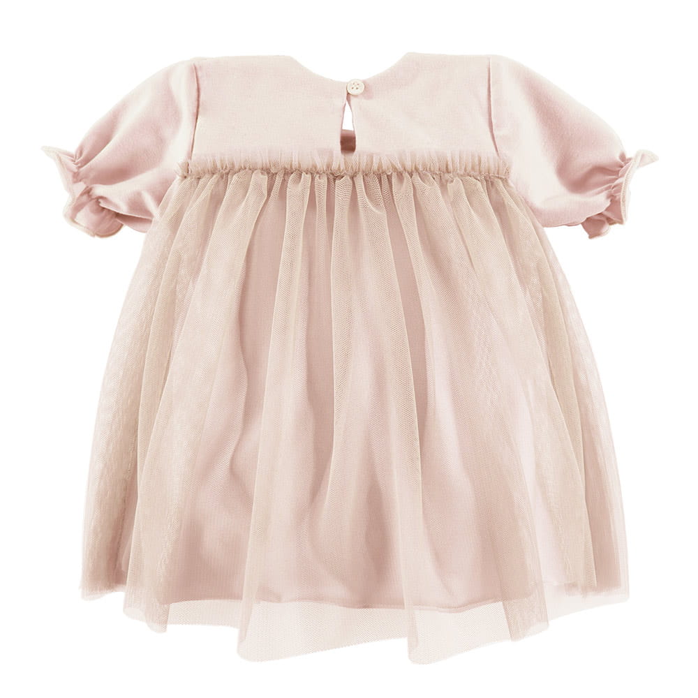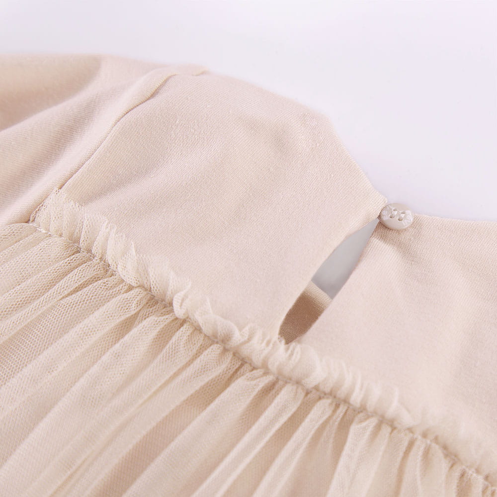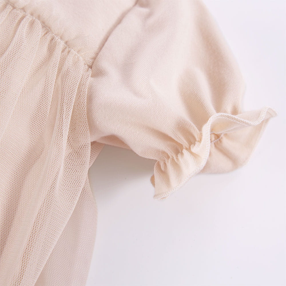 Tulle dress short sleeves beige